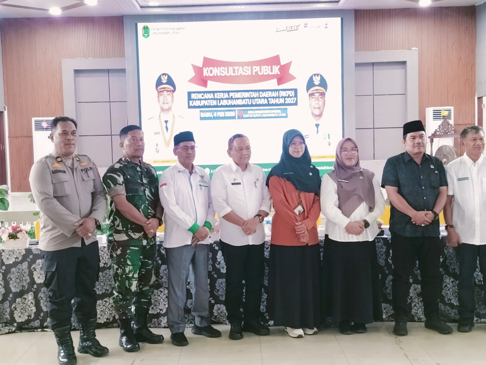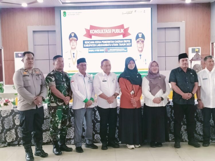 Labuhanbatu – Kodim 0209/Labuhanbatu melalui Danramil 01/Aek Kanopan Mayor Inf Parlindungan Sinaga, S.H., menghadiri Rapat Konsultasi Publik Rancangan Awal Rencana Kerja Pemerintah Daerah (RKPD) Kabupaten Labuhanbatu Utara Tahun 2027 yang digelar di Aula Ahmad Dwi Syukur, Kantor Bupati Labuhanbatu Utara, Rabu (4/2/2026). Kehadiran TNI dalam forum ini merupakan bentuk dukungan terhadap proses perencanaan pembangunan daerah yang partisipatif dan berorientasi pada kepentingan masyarakat.