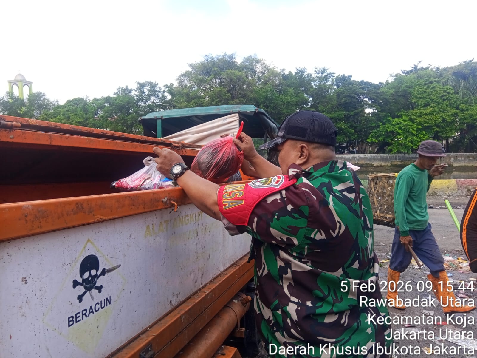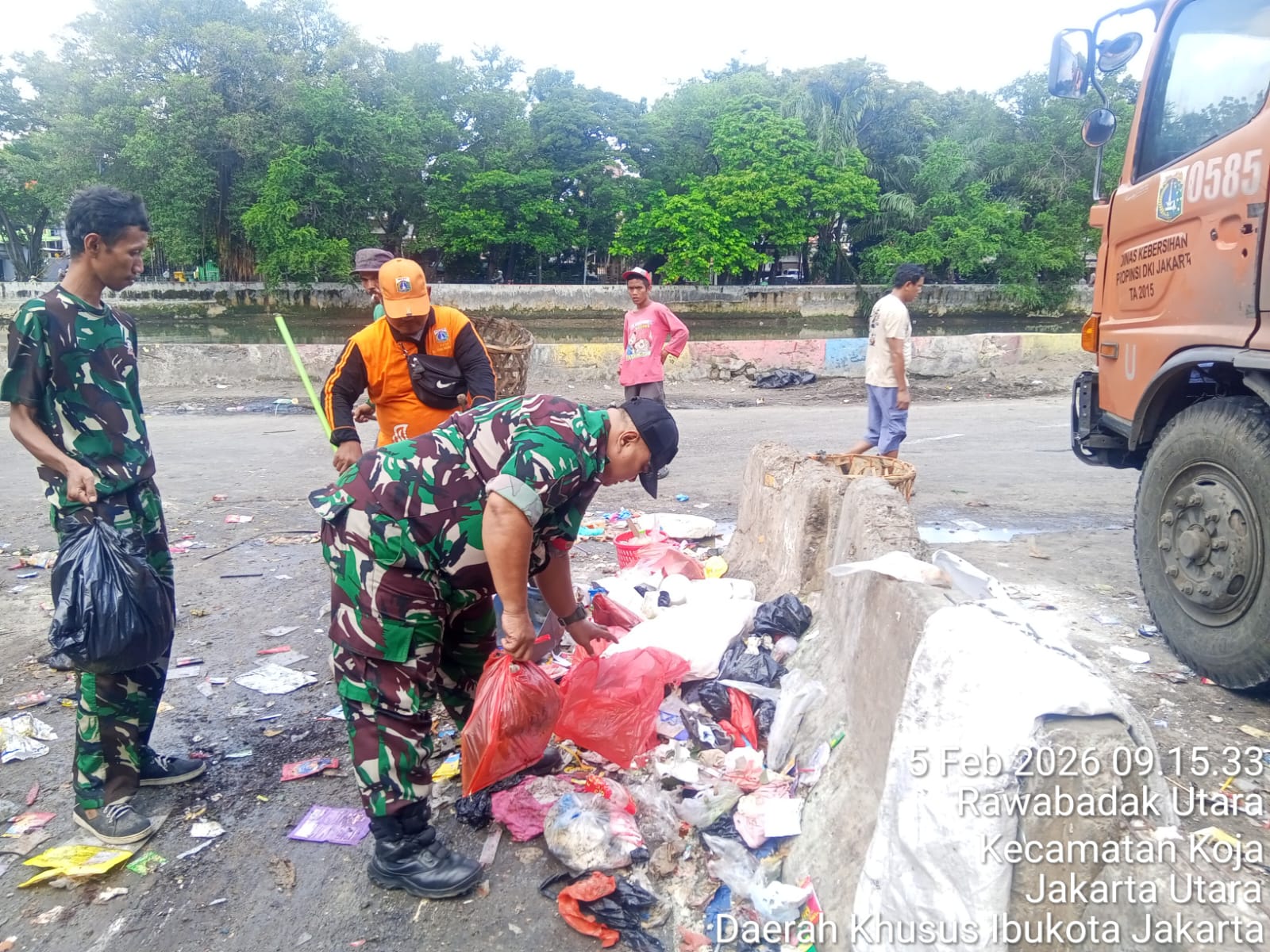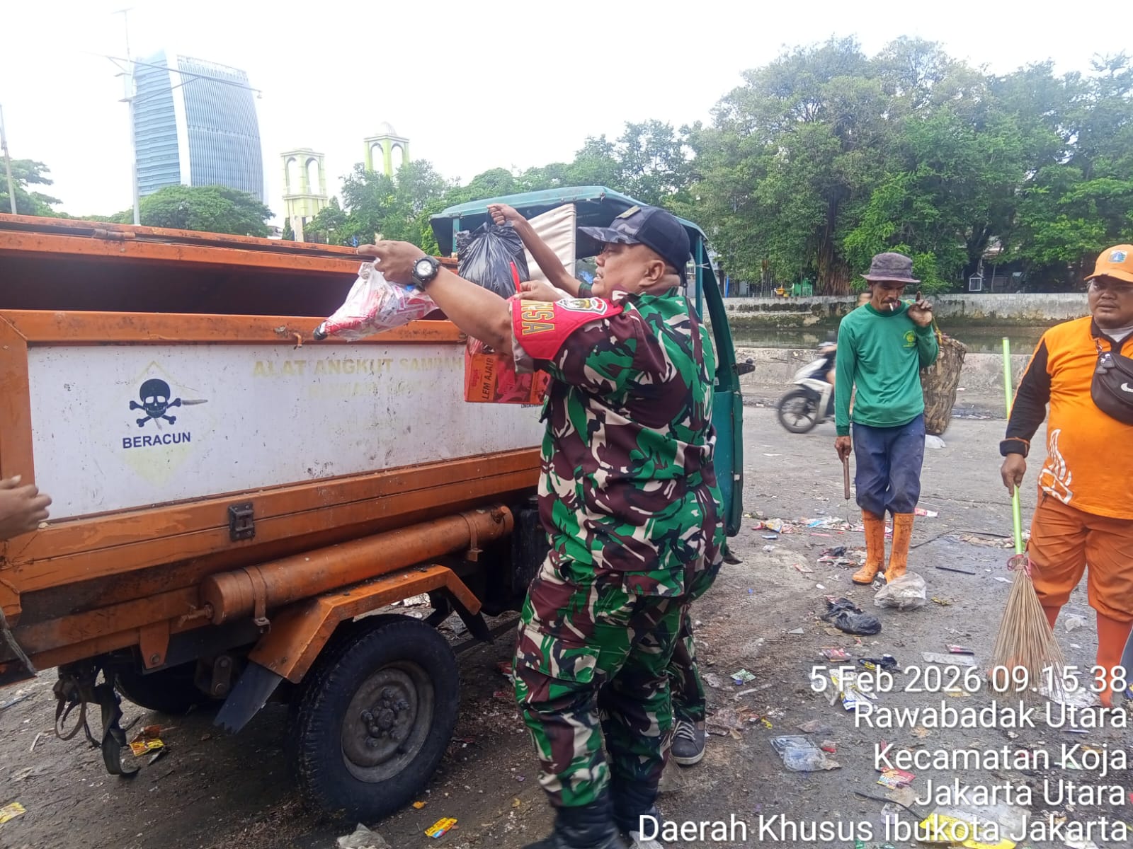 Hari ini Kamis 05 Februari 2026 Satgas Sampah Kodim 0502/JU terdiri dari Babinsa Kel. Koja Serka Rohmani,warga masyarakat Koja,para PPSU Kel.Koja dan Mitra Jaya bahu membahu membersihkan sampah dalam rangka mendukung Program pemerintah bersih-bersih Kampung.