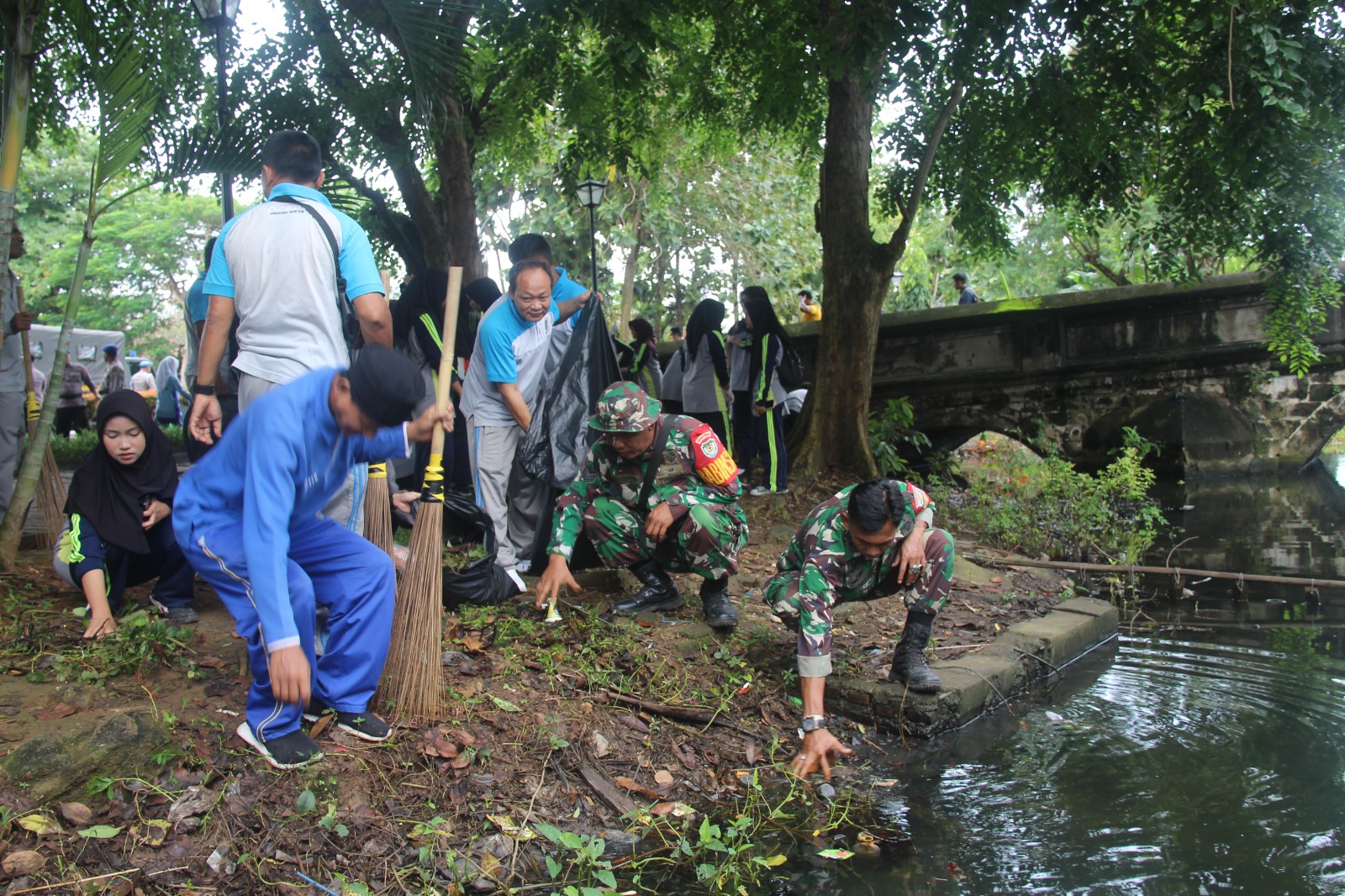 Personel TNI dari Kodim 0602/Serang jajaran Korem 064/Maulana Yusuf bersama prajurit Brigif 87/Salakanagara turun langsung membersihkan area publik. Keterlibatan TNI menjadi bagian dari pembinaan teritorial untuk menumbuhkan kepedulian lingkungan dan memperkuat kedekatan dengan masyarakat.