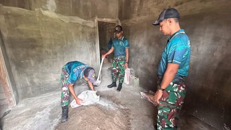Karya bakti tersebut dilaksanakan secara gotong royong oleh personel Pos Haslot bersama warga setempat. Prajurit Satgas membantu proses penyemenan tembok rumah agar bangunan menjadi lebih kuat, rapi, dan layak huni, sekaligus meningkatkan kenyamanan dan keamanan bagi keluarga pemilik rumah.