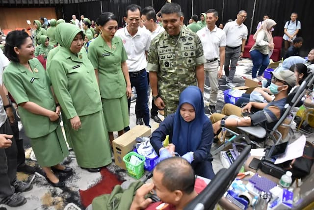 Setetes Darah Sejuta Harapan,Korem 031/WB Gelar Baksos Donor Darah Peringati HUT ke-80 Persit KCK