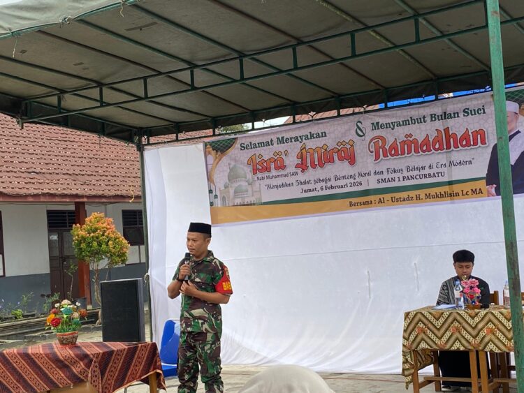 Pancur Batu – Koramil 0201-14/PB. Bertempat di SMAN 1 Pancur Batu, Serka Suryanto sebagai Babinsa hadiri kegiatan Peringatan Isra Miraj bersama Guru dan Siswa Siswi SMAN 1 Pancur Batu Jumat (06/02/2026)