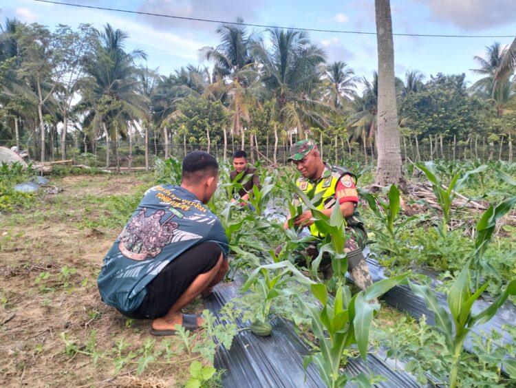 Aceh Timut – Dalam rangka mendukung program ketahanan pangan nasional, Babinsa Koramil 16/Peudawa Kodim 0104/Aceh Timur terus aktif melakukan pendampingan kepada petani di wilayah binaannya. Kali ini, Sertu Nurdin melaksanakan kegiatan perawatan tanaman jagung bersama petani di Desa Gampong Keude, Kecamatan Peudawa, Kabupaten Aceh Timur, Sabtu (07/02/2026).