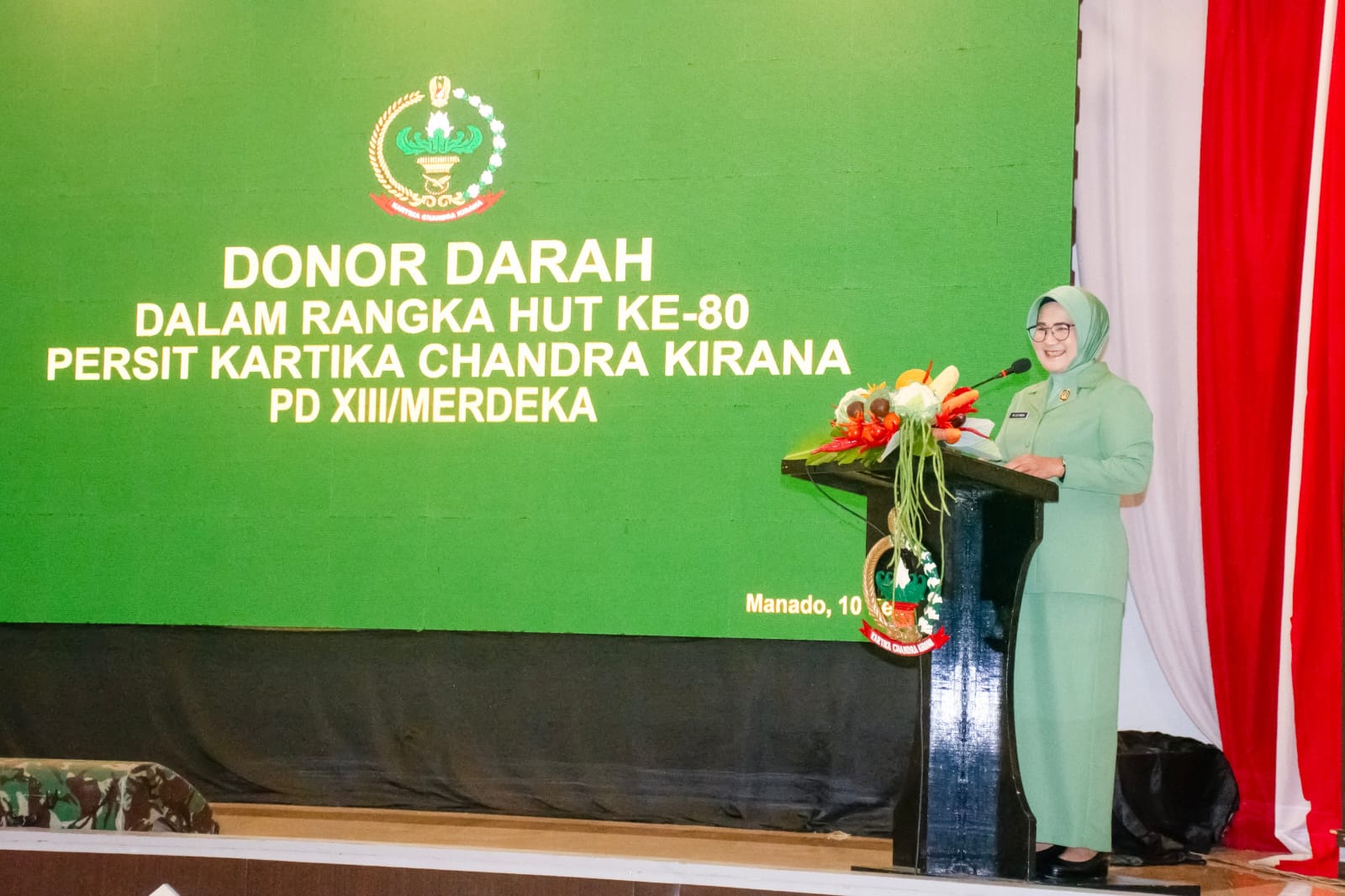 Dalam kesempatan tersebut, Ketua Persit KCK Daerah XIII/Merdeka Ny. Lely Mirza Agus menyampaikan bahwa peringatan HUT ke-80 Persit merupakan momentum yang sangat bermakna untuk merefleksikan peran Persit sebagai pendamping prajurit sekaligus mitra strategis TNI AD dalam mendukung tugas pengabdian kepada bangsa dan negara. Ia menegaskan bahwa melalui kegiatan donor darah ini, Persit tidak hanya menunjukkan kepedulian sosial, tetapi juga menghadirkan wujud nyata kasih sayang dan empati kepada sesama.