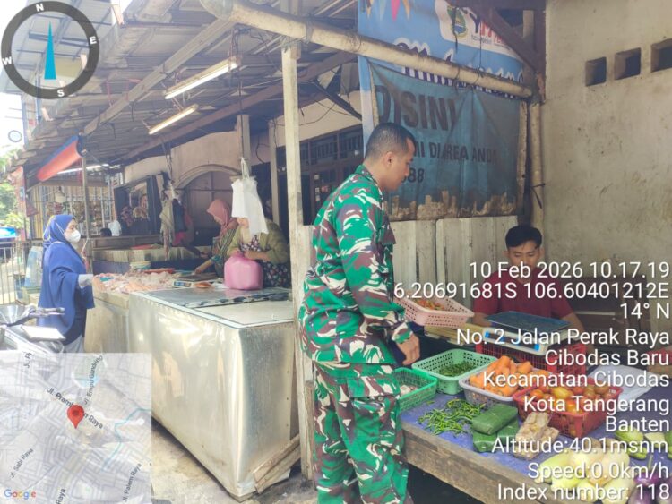 Kodam Jaya, Tangerang – Dalam rangka memastikan stabilitas harga dan ketersediaan bahan pokok seperti cabe, bawang dan bahan pokok saat mendekati bulan suci Ramadhan, Babinsa Koramil 06/Cibodas Kodim 0506/Tgr turun langsung memonitoring harga Sembako di pasar tradisional di wilayah teritorial Koramil 06/Cibodas, Selasa (10/02/2026).
