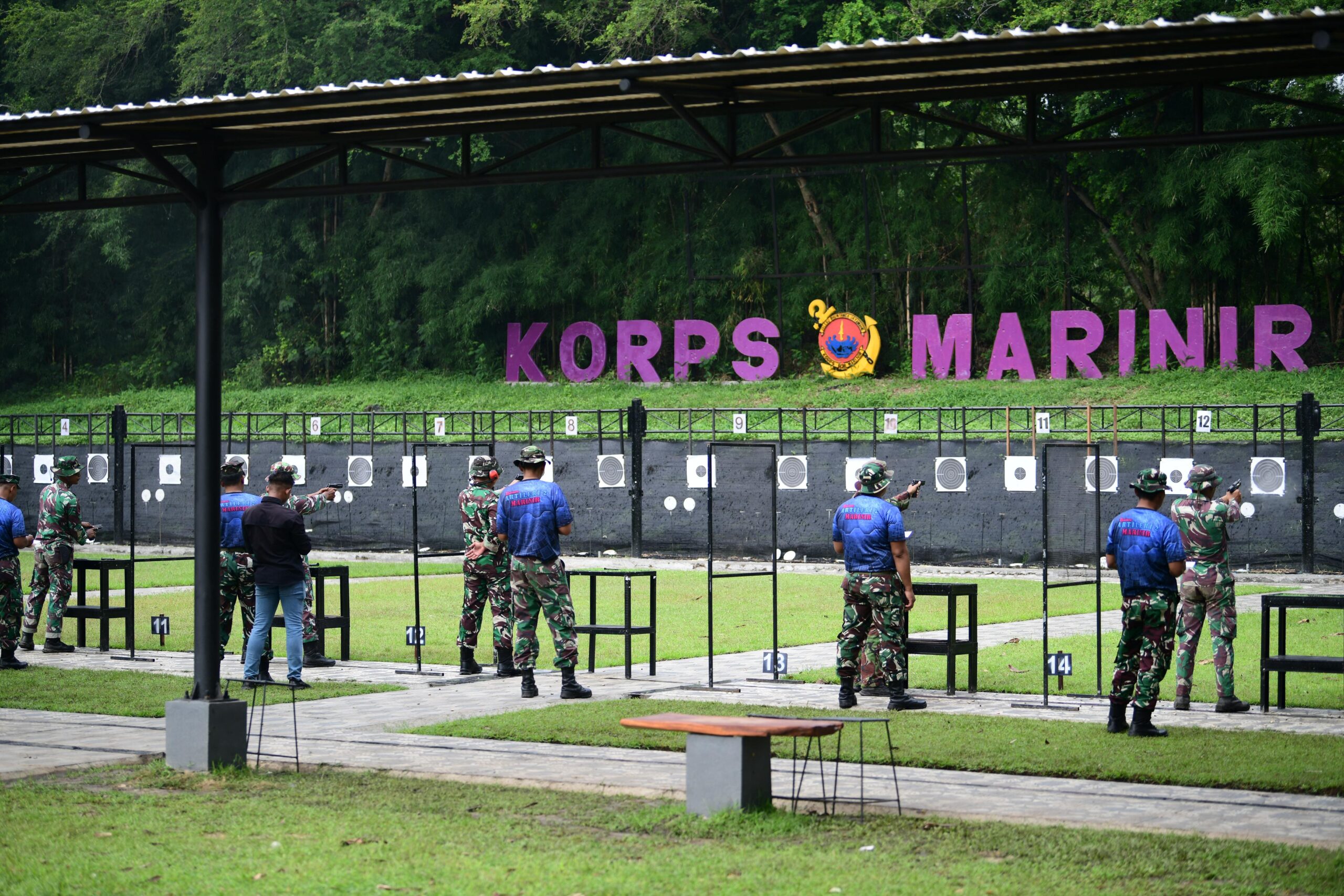 TNI AL, Dispen Kormar (Surabaya). Dengan penuh semangat dan percaya diri, atlet menembak senapan dan pistol Batalyon Kapa 2 Marinir mengikuti perlombaan menembak yang diselenggarakan di Lapangan Tembak Internasional FX Soepramono, Kesatrian Marinir Sutedi Senaputra, Karangpilang, Surabaya. Rabu (11/02/26).