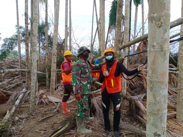 Aceh Timur – Babinsa Koramil 20/PB Kodim 0104/Aceh Timur, Serma Abdul Hakim, melaksanakan kegiatan pendampingan normalisasi jaringan listrik PLN di Dusun Sarahgala, Desa Sahraja, Kecamatan Pante Bidari, Kabupaten Aceh Timur.Rabu(11/2/2026).
