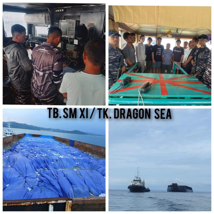Kendari, – Pada Hari Senin Tanggal 9 Februari 2026, KRI Tongkol-813, berhasil mengamankan rangkaian kapal Tug Boat (TB) SM XI dan Tongkang (TK) Dragon Sea yang tengah mengangkut ribuan metrik ton limbah Bahan Berbahaya dan Beracun (B3) di perairan Selat Tioro, Senin (09/02).