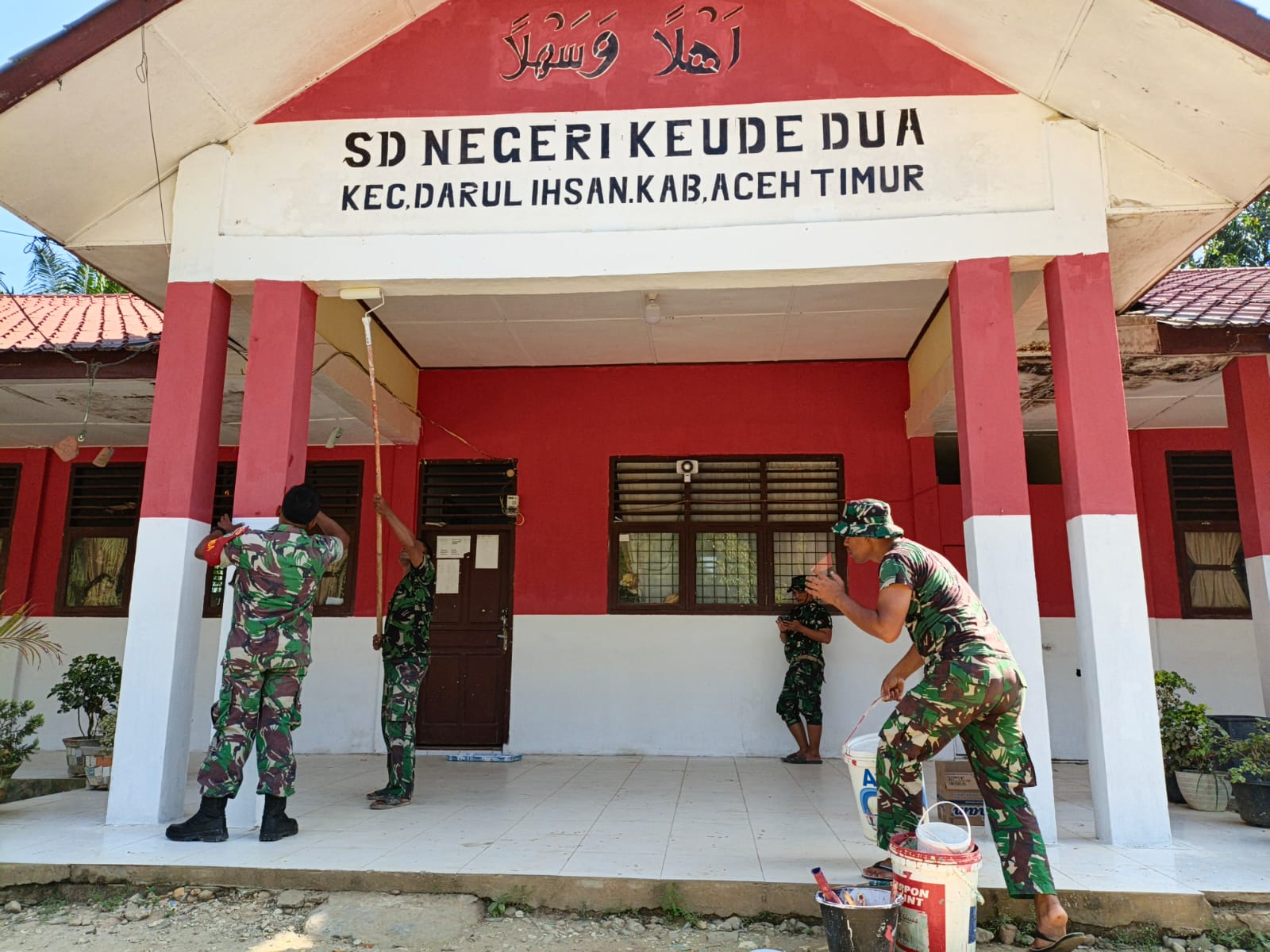 Aceh Timur – Sebagai bentuk kepedulian terhadap dunia pendidikan, jajaran Koramil Kodim 0104/Aceh Timur melaksanakan kegiatan pengecatan fasilitas sekolah di beberapa wilayah binaan. Rabu (11/2/2026).