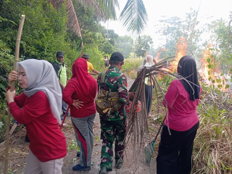 Dukung Program Gerakan Indonesia ASRI, Babinsa Senayang Bersama Unsur Forkopimcam dan Warga Gelar Korve Bersama