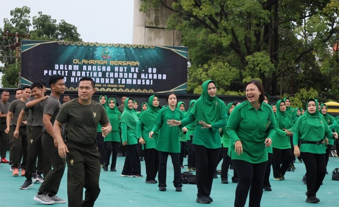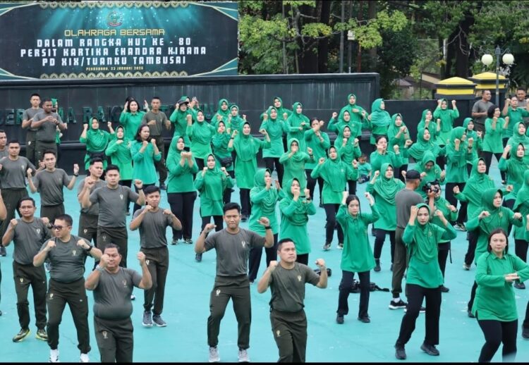 PEKANBARU || Dalam rangka memperingati Hari Ulang Tahun (HUT) ke-80 Persit Kartika Chandra Kirana Tahun 2026, Kodam XIX/Tuanku Tambusai melaksanakan kegiatan olahraga bersama di lapangan depan Makodam XIX/Tuanku Tambusai, yang dilanjutkan dengan donor darah, bertempat di Gedung Kharuddin Nasution Makodam XIX/Tuanku Tambusai, Jalan Mayor Ali Rasyid No. 1 Pekanbaru, Jumat (23/1/2026).