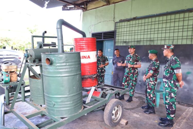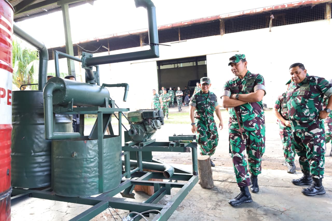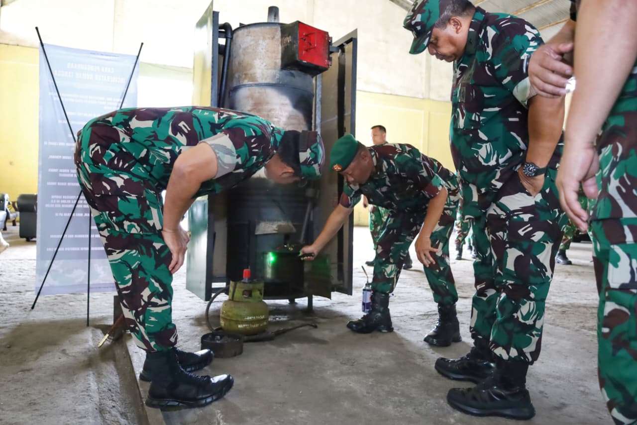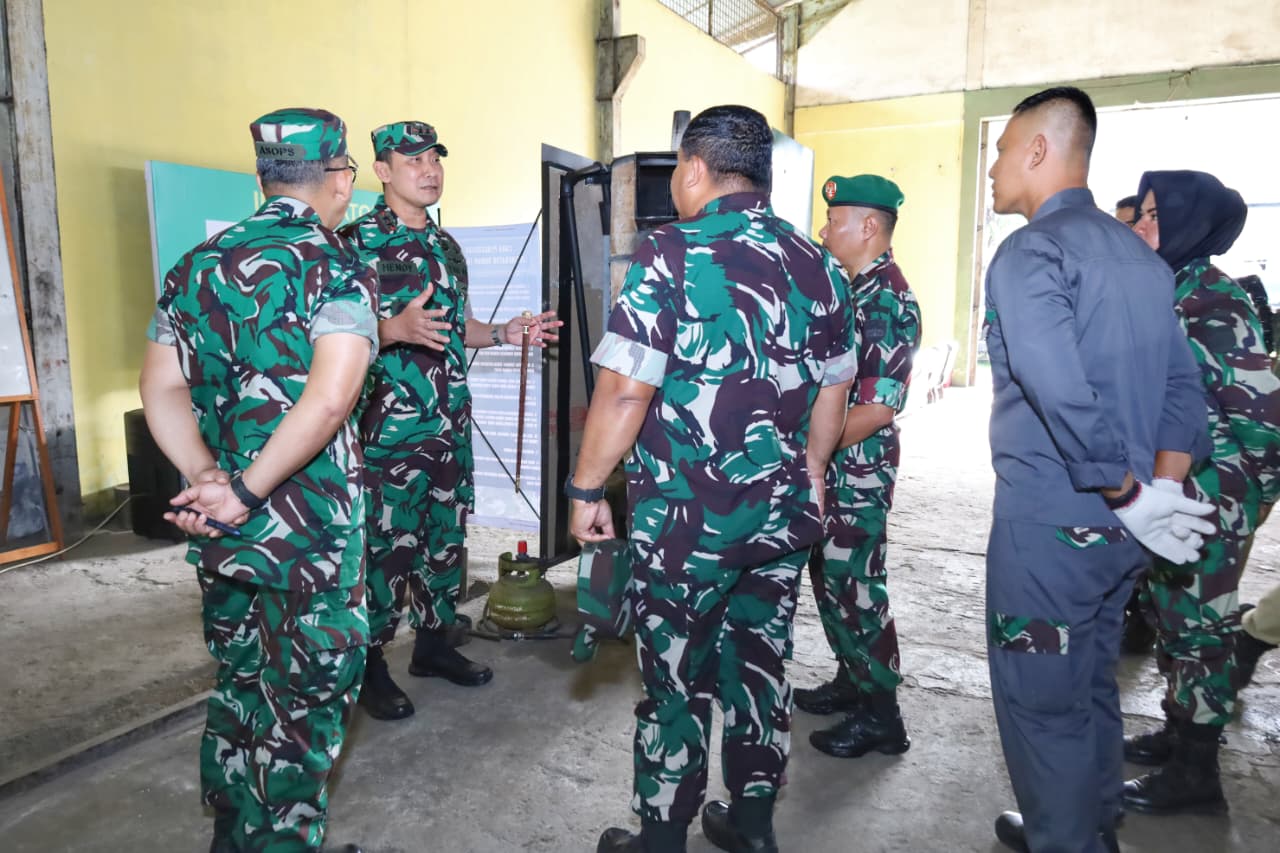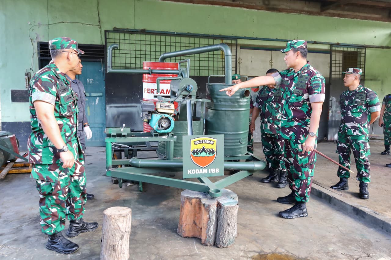Setibanya di lokasi, Pangdam I/BB menerima hormat jajar sebelum menuju area workshop untuk meninjau tahapan pengerjaan. Di tempat tersebut, Kapaldam I/BB, Letnan Kolonel Haris Waskito, S.E., memberikan penjelasan terkait proses pembuatan, spesifikasi teknis, serta mekanisme kerja alat incinerator yang dirancang untuk pengolahan limbah secara efektif dan aman.