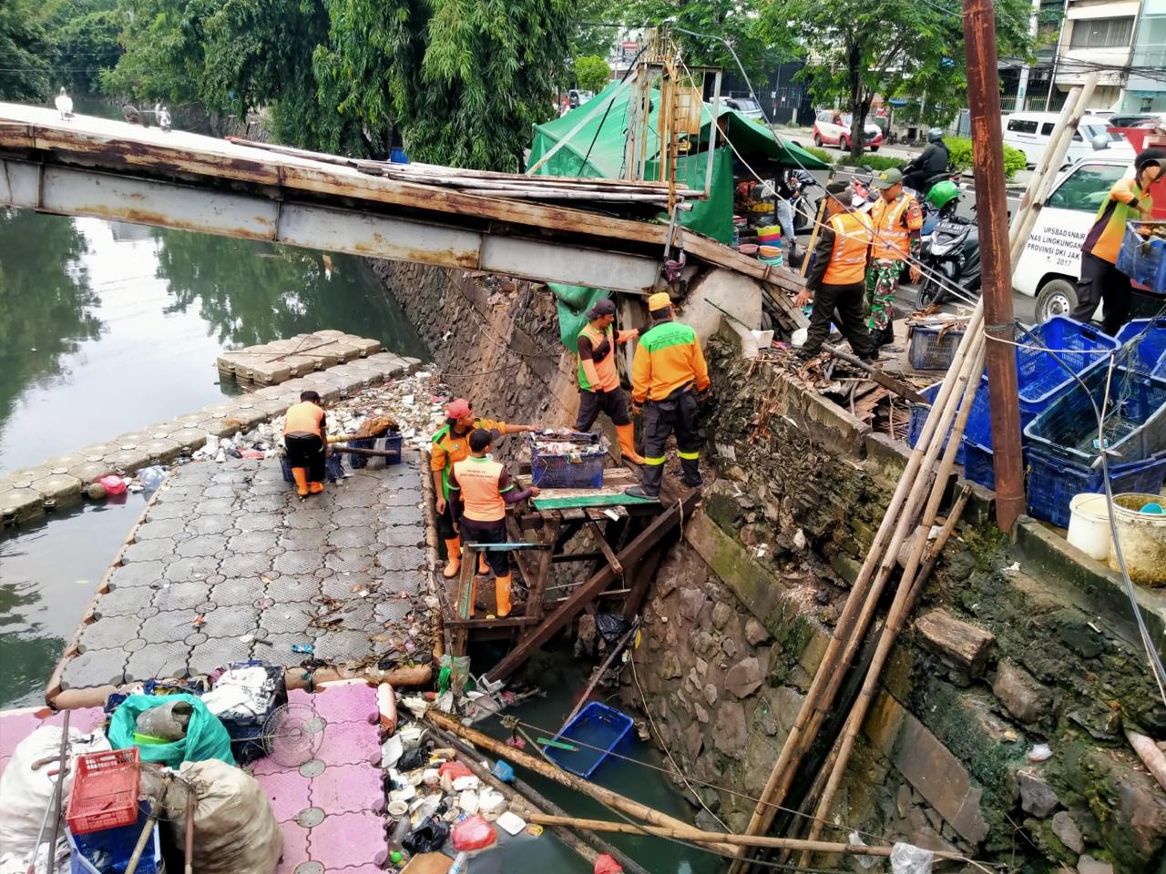 Dalam pelaksanaan personel Satgas bersama PPSU dan warga masyarakat membersihkan seluruh sampah yang terlihat di wilayah Koramil 01/Tamansari,tepatnya sampah yang ada di bantaran Sungai Anak Kali Ciliwung Jln Pangeran Jayakarta Kel.Mangga Besar Kec. Tamansari Jakarta Barat.