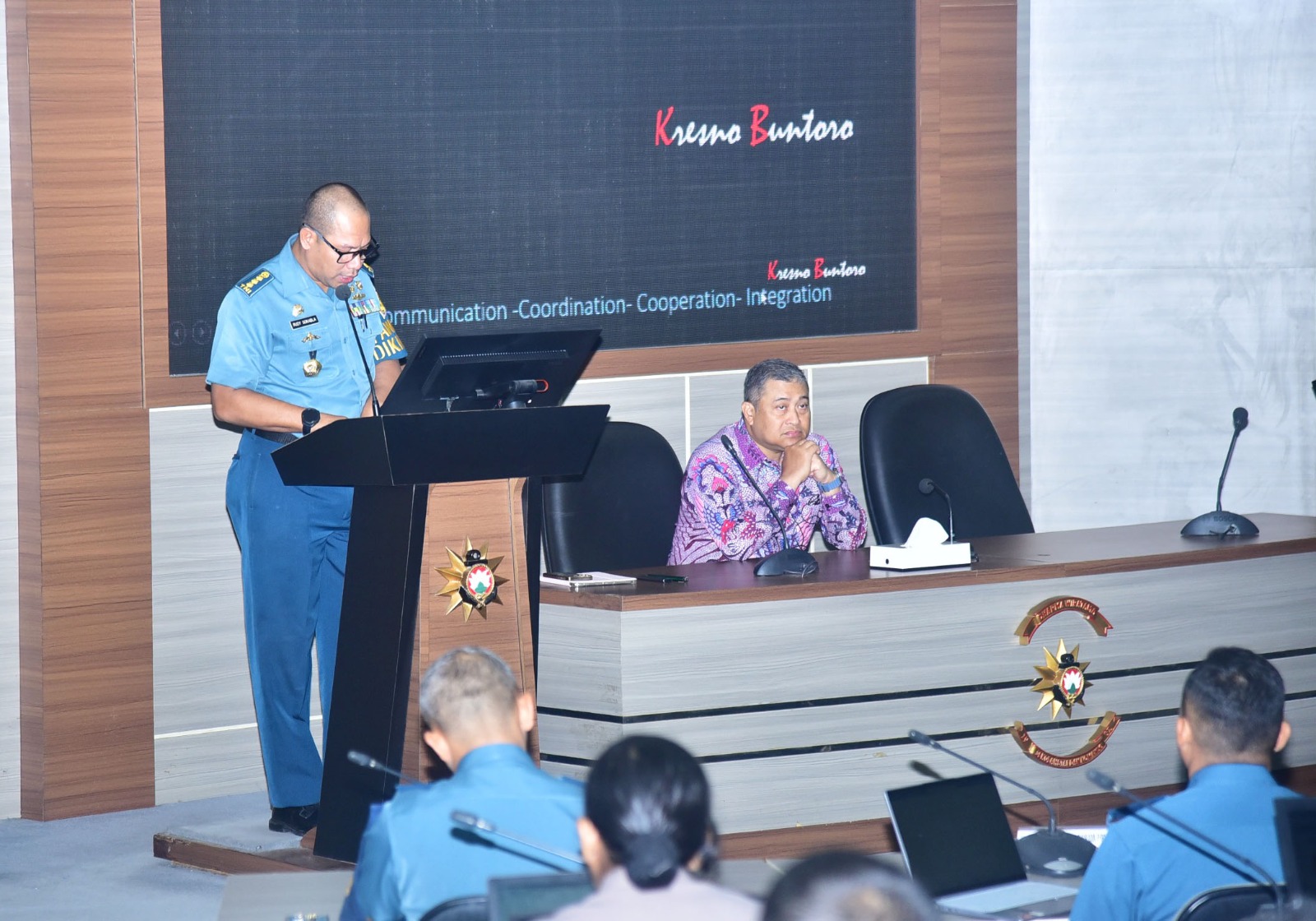 Danseskoal dalam sambutan pengantarnya yang dibacakan Dosen Lingstra Koordos Seskoal mengucapkan “Selamat datang dan terima kasih atas kesediaan Bapak Laksamana Muda TNI (Purn) Kresno Buntoro, S.H., LL.M., Ph.D. yang telah berkenan memenuhi undangan untuk memberikan kuliah umum kepada Pasis Dikreg Seskoal angkatan ke-65 TA 2026 dengan materi tentang Hukum Laut Internasional. Pengetahuan Hukum Laut Internasional penting bagi Pasis Dikreg Seskoal karena mengatur hak dan kewajiban negara di laut, pengetahuan ini membantu Pasis Dikreg Seskoal memahami peran TNI Angkatan Laut dalam menjaga kedaulatan dan keamanan laut Indonesia”.