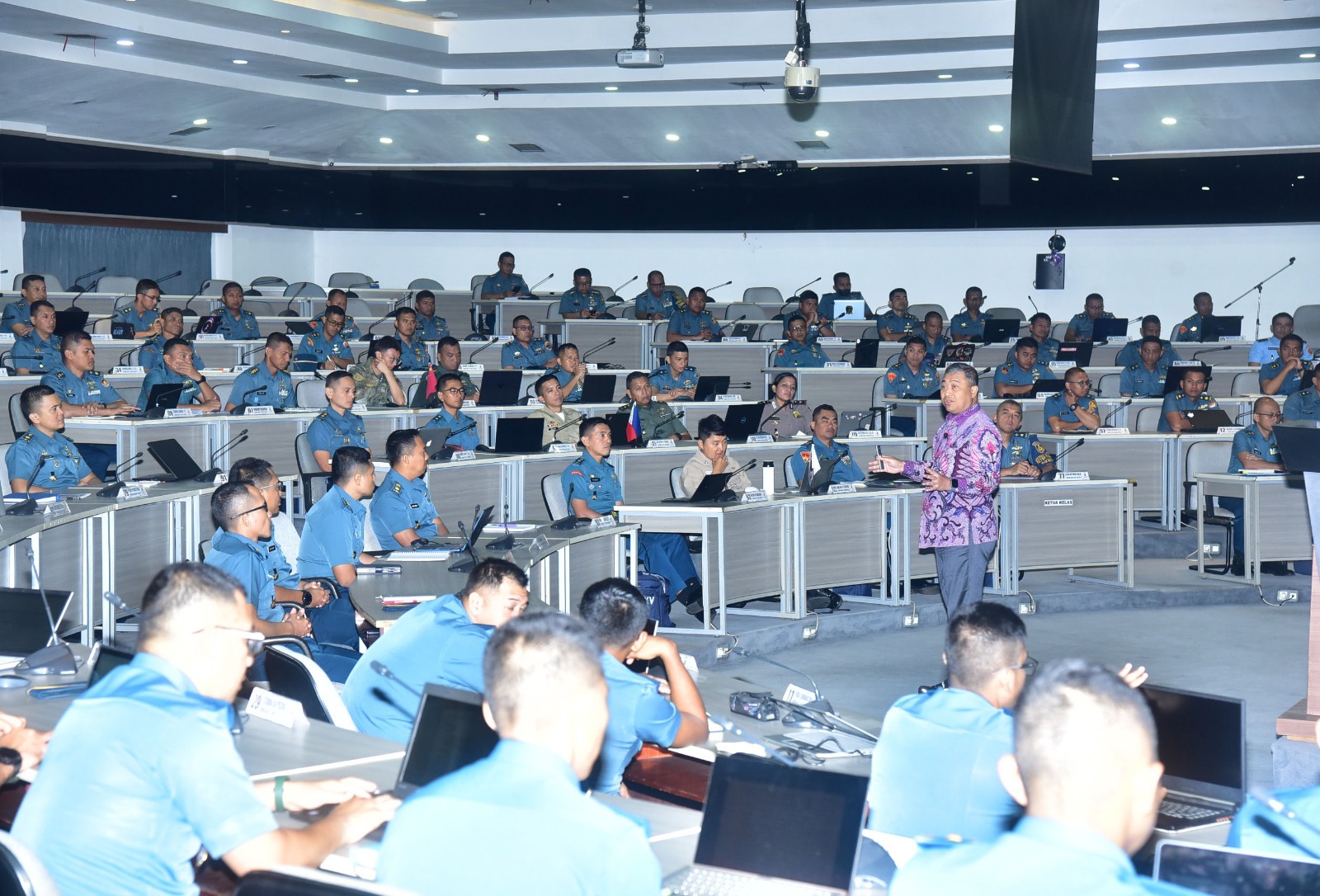 Komandan Sekolah Staf dan Komando Angkatan Laut (Danseskoal) Laksamana Muda TNI Ariantyo Condrowibowo diwakili Dosen SBS Lingkungan Strategis (Lingstra) Koordos Seskoal Kolonel Laut (E) Rudy Sokabla, S.T., M.Tr.Opsla. menerima kedatangan Laksamana Muda TNI (Purn) Kresno Buntoro, S.H., LL.M., Ph.D. dalam rangka memberikan kuliah umum tentang Hukum Laut Internasional kepada Perwira Siswa Pendidikan Reguler (Pasis Dikreg) Seskoal angkatan ke-65 TA 2026, bertempat di kelas A gedung R.E. Martadinata Seskoal, Cipulir, Jakarta Selatan, Kamis (19/02/2026).