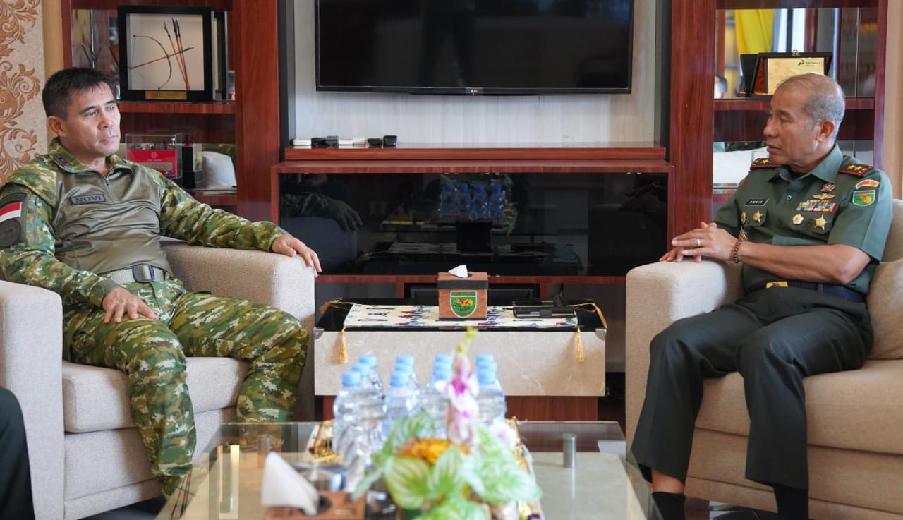 Jayapura — Pangdam XII/Tanjungpura, Mayjen TNI Novi Rubadi Sugito, S.I.P., M.Si., menyambangi Markas Kodam XVII/Cenderawasih di Kota Jayapura, Papua, pada Jum’at (20/2). Kunjungan kehormatan ini tidak hanya menjadi ajang silaturahmi antar-petinggi TNI Angkatan Darat, tetapi juga menandai selesainya tugas Mayjen TNI Novi Rubadi sebagai Panglima Komando Operasi (Pangkoops) Swasembada.