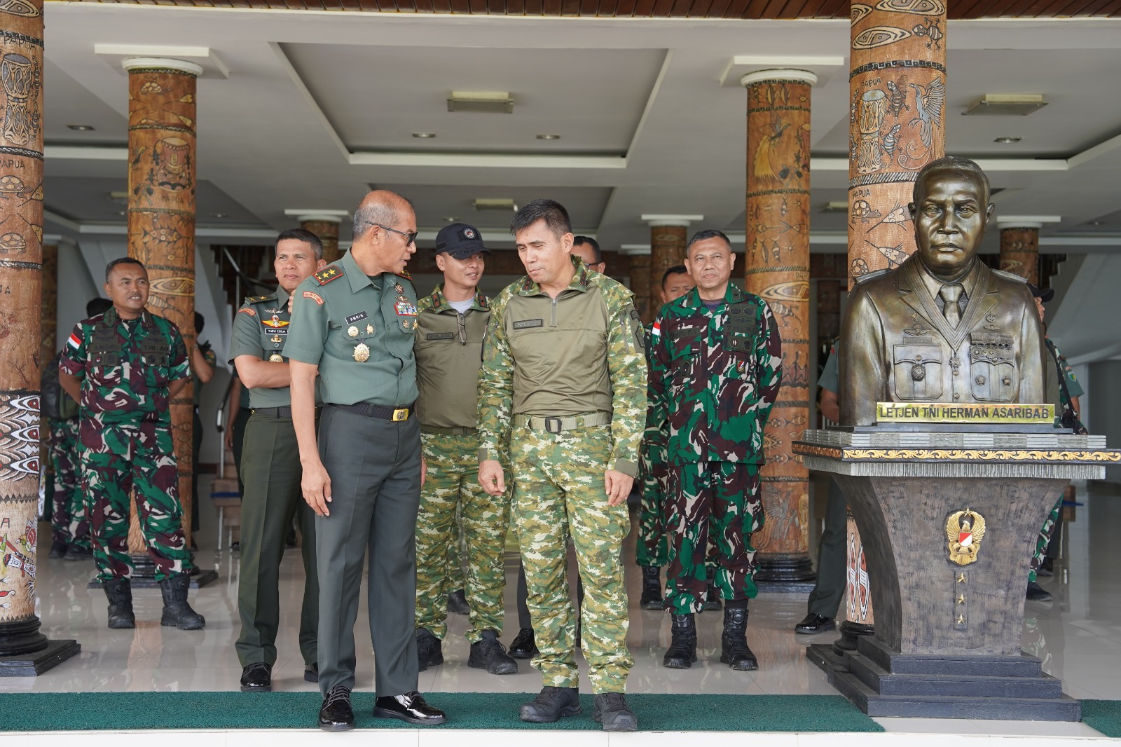 Kedatangan Pangdam XII/Tpr tersebut disambut hangat oleh Pangdam XVII/Cenderawasih, Mayjen TNI Amrin Ibrahim, S.I.P. Pertemuan kedua jenderal bintang dua ini berlangsung akrab di Ruang Kerja Pangdam XVII/Cen, mencerminkan soliditas yang kuat di tubuh TNI AD dalam mengawal program-program strategis di wilayah Papua.
