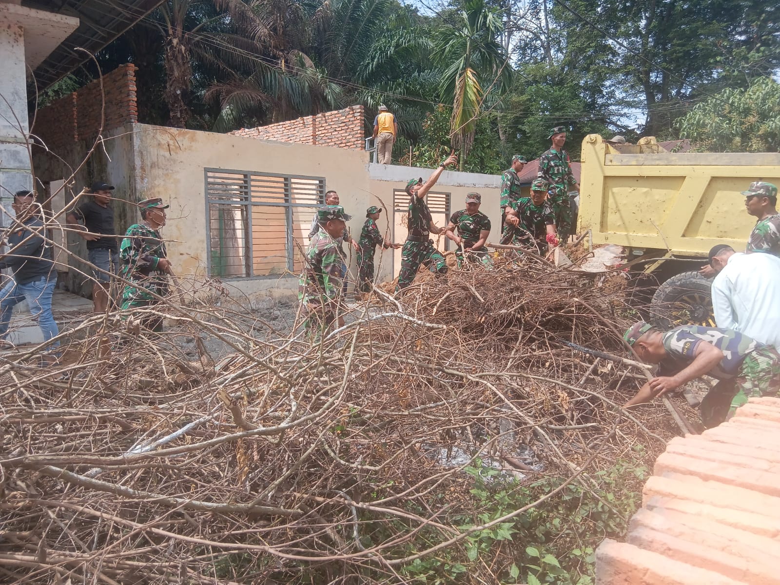 Kegiatan karya bhakti ini dilakukan sebagai bentuk kepedulian TNI terhadap kebersihan lingkungan sekaligus membantu masyarakat dalam memanfaatkan kembali fasilitas umum yang sebelumnya tidak terawat. Dengan penuh semangat kebersamaan, personel Koramil bersama warga bergotong royong membersihkan sampah, rumput liar, serta merapikan area bangunan pasar agar terlihat lebih bersih dan rapi.