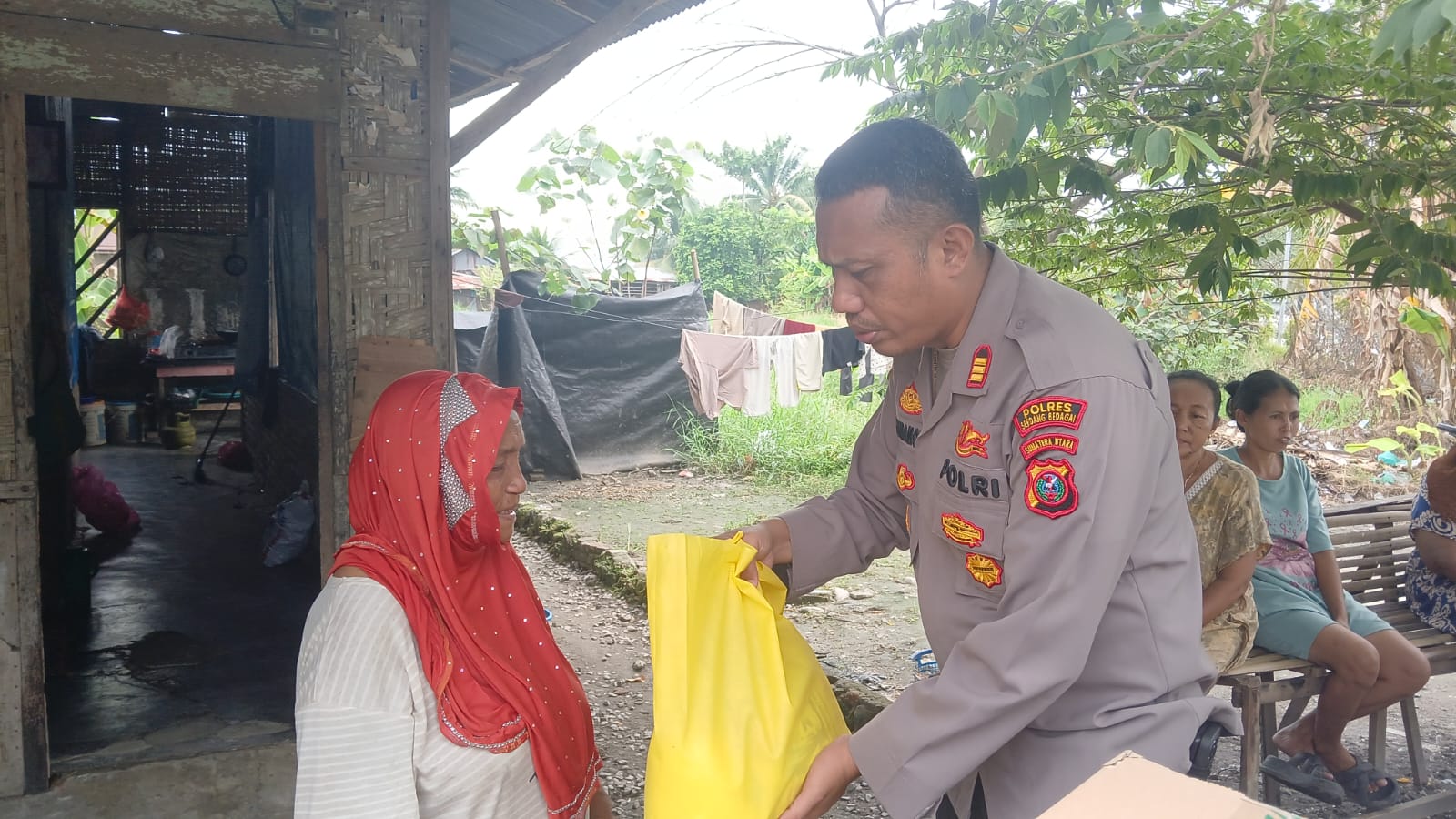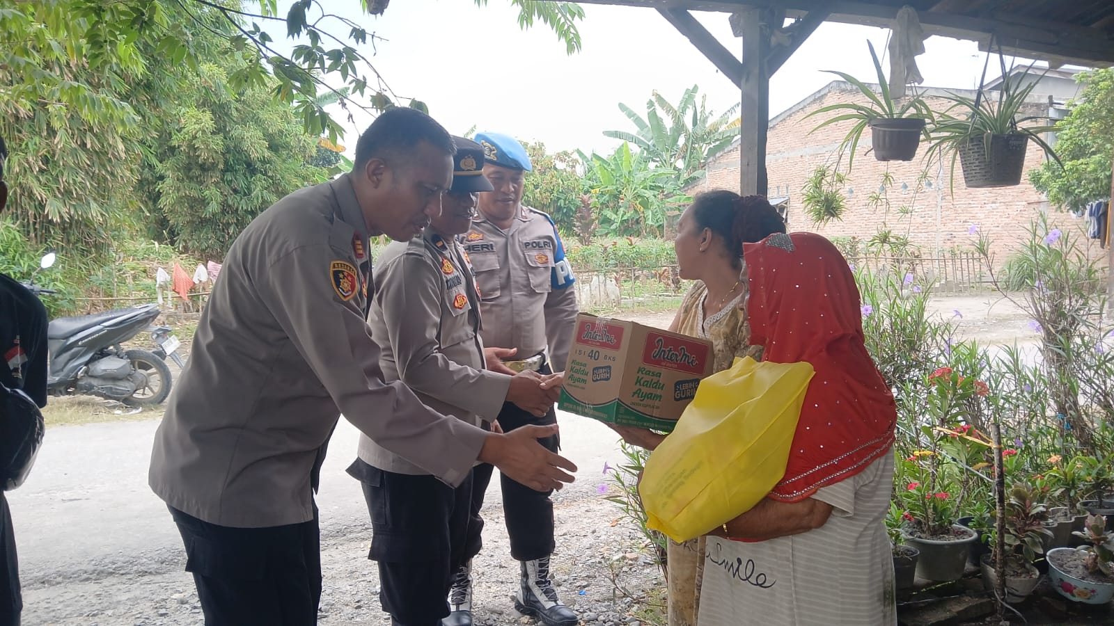 Dalam pelaksanaannya, Kapolsek bersama personel menyerahkan bantuan sembako kepada tiga warga yang membutuhkan, yakni Mah Toel (62), Amat Jais (53), dan Bukirah (52).