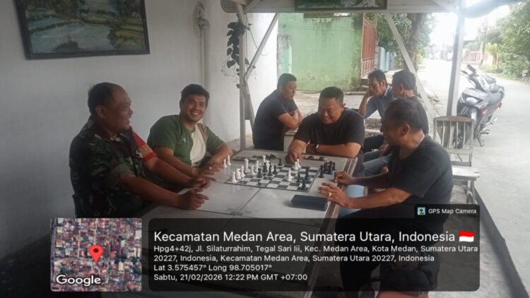 Ciptakan kedekatan warga binaan, Babinsa Koramil 0201-04/MK, Sertu Ridwan Naim melaksanakan Komsos dengan Warga di Warung Pak Kardi, jl.Bromo lrg.amal Kel.Tegal sari III, Kec. Medan Area, Sabtu (21/02/2026).