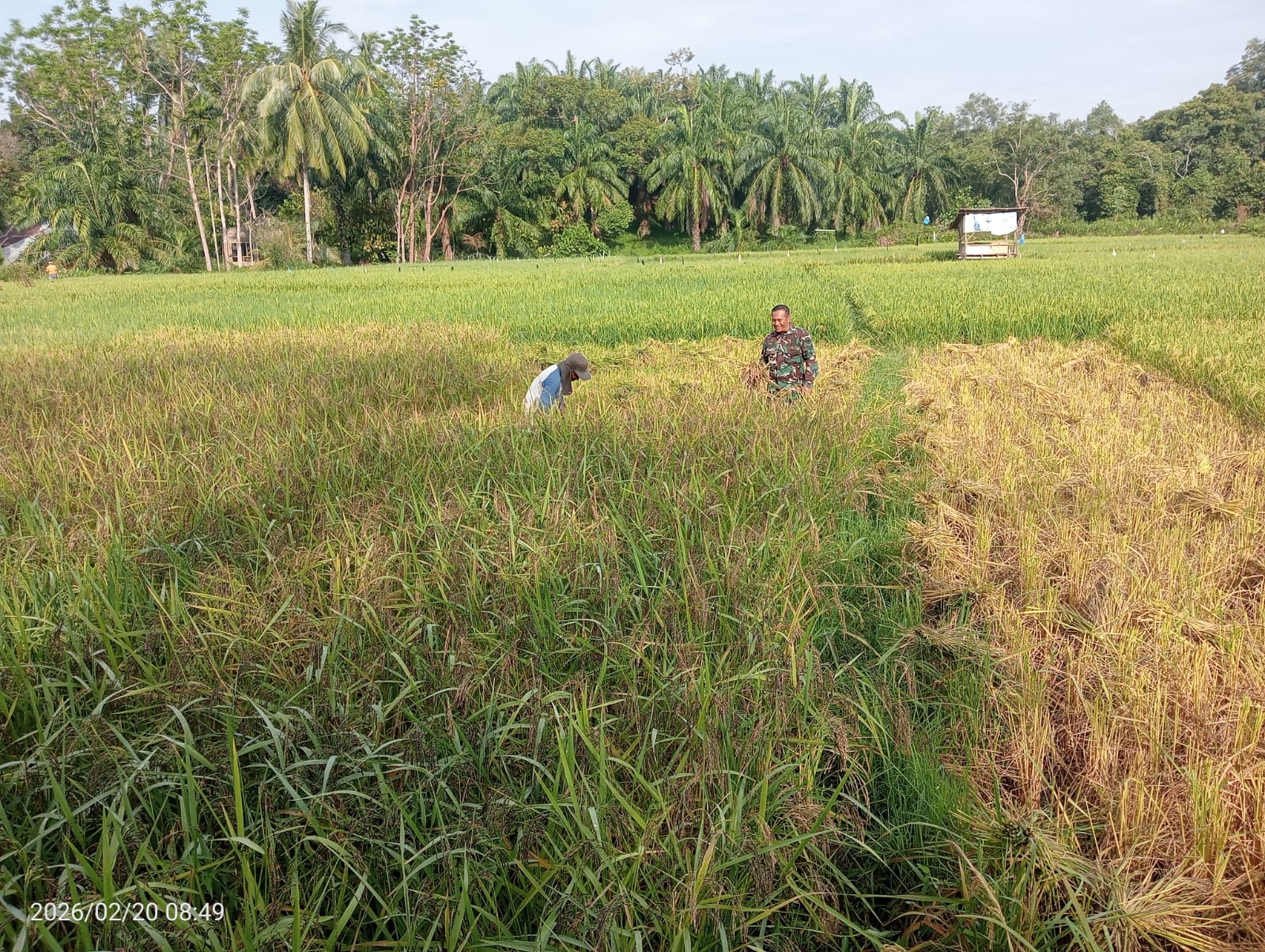 Aceh Timur – Babinsa Koramil 03/Rts, Serka Sigit Pramono melaksanakan kegiatan pendampingan kepada para petani di wilayah desa binaannya dengan terjun langsung ke sawah membantu proses panen padi di lahan persawahan milik warga Desa Bayeun, Kecamatan Rantau Selamat, Kabupaten Aceh Timur, (21/02/2026).