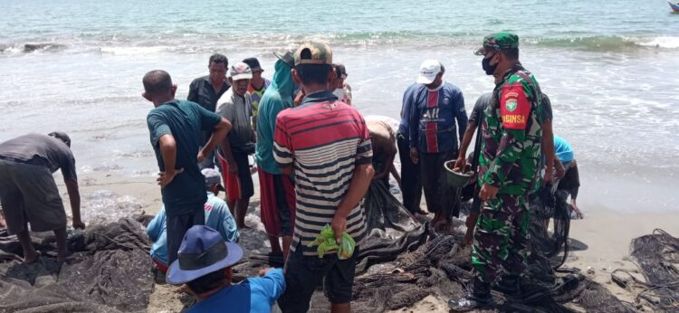 Dalam kegiatan itu, Babinsa berdialog dengan nelayan terkait kondisi cuaca, hasil tangkapan, dan kendala di laut.