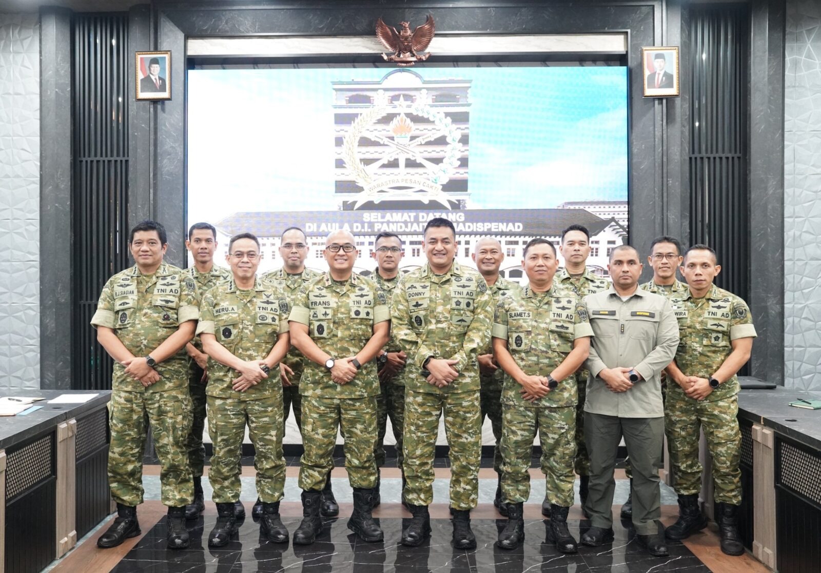 Dalam upaya memperkuat sinergi dan efektivitas pelaksanaan tugas di era digital, Kepala Dinas Penerangan Angkatan Darat (Dispenad) Brigjen TNI Donny Pramono, S.E., M.Han. menerima kunjungan Komandan Pusat Sandi dan Siber Angkatan Darat (Pussiberad) Brigjen TNI Dr. Fransiscus Ari Susetio, S.E., M.Han. beserta jajaran, di Aula D.I Panjaitan, Madispenad, Jakarta, Jumat (20/2/2026).