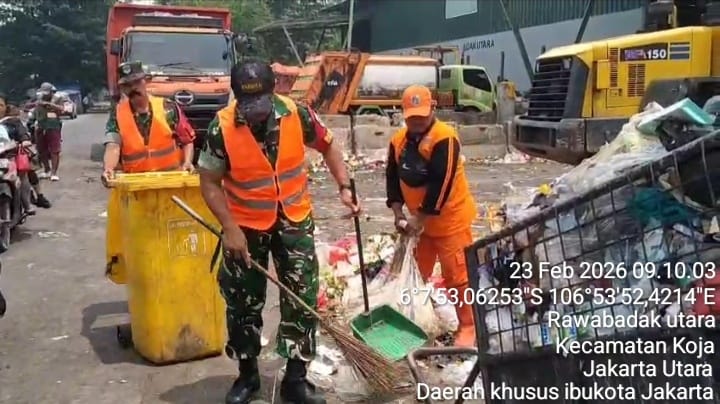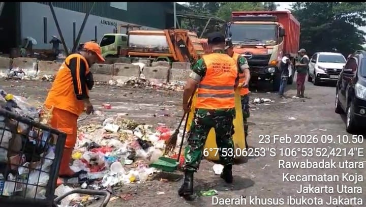 Hari ini Senin 23 Februari 2026 pukul 09.30 Wib,aksi bersih sampah kembali dilaksanakan dalam Program Satgas Grebek Sampah Kodim 0502/JU di Jl. Inspeksi Kali Sunter Kel. Rawabadak Utara Kec. Koja Kota Adm Jakarta Utara.