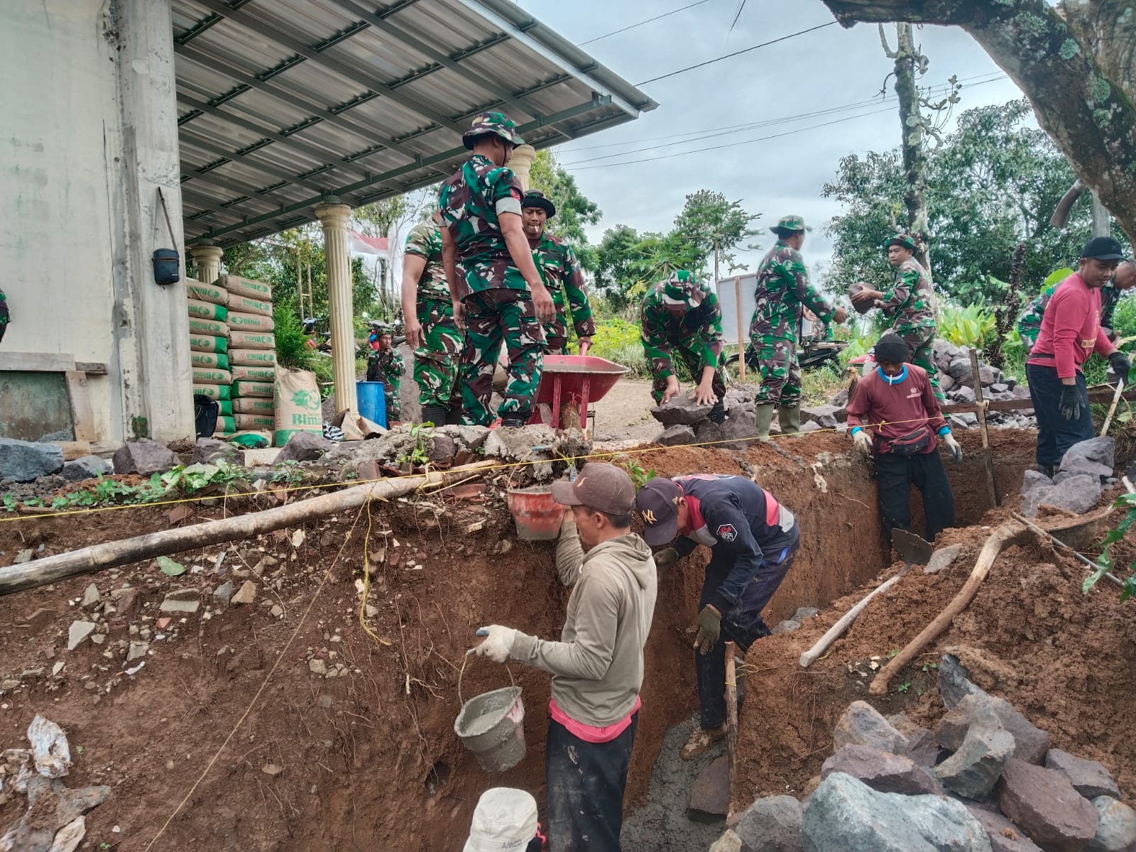 Wonogiri – Salah satu wujud nyata kemanunggalan TNI dengan rakyat dalam mendukung percepatan pembangunan di wilayah pedesaan. Melalui program ini, TNI bersama masyarakat terus bergotong royong membangun sarana dan prasarana yang bermanfaat bagi peningkatan kesejahteraan warga.