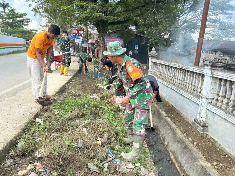 Aceh Timur — Kepedulian terhadap kebersihan lingkungan terus ditunjukkan aparat kewilayahan bersama masyarakat. Kali ini, Serda Bayu selaku Babinsa dari Koramil 08/Spu jajaran Kodim 0104/Atim melaksanakan kegiatan gotong royong bersama anggota Yon TP dan warga untuk membersihkan parit di Desa Keude Tuha, Kecamatan Simpang Ulim, Kabupaten Aceh Timur. Senin(23/02/2026).