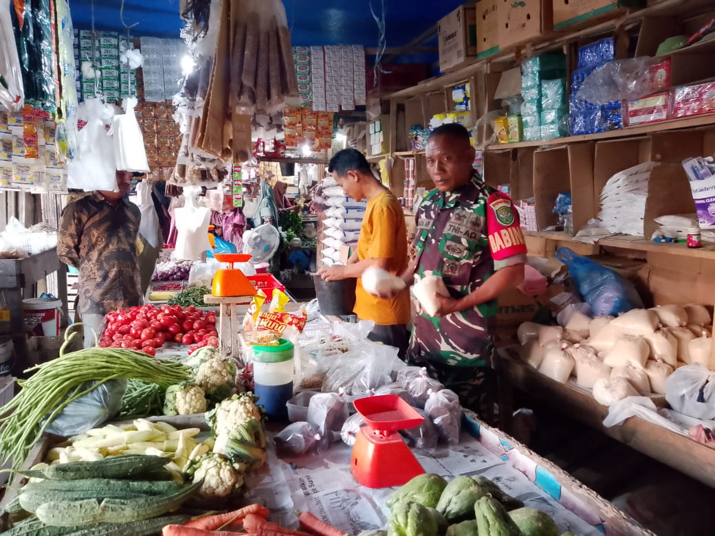 Kegiatan tersebut dilakukan dengan mendatangi para pedagang secara langsung guna memantau perkembangan harga bahan pokok seperti beras, minyak goreng, gula, telur, dan kebutuhan penting lainnya yang biasanya mengalami peningkatan permintaan selama bulan puasa. Selain itu, Babinsa juga berinteraksi dengan masyarakat untuk mengetahui kondisi ketersediaan barang di pasaran.