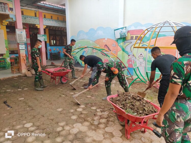 Sertu Arisandi menyampaikan bahwa kegiatan gotong royong ini merupakan bentuk kepedulian TNI terhadap dunia pendidikan, khususnya dalam menciptakan lingkungan sekolah yang sehat dan bersih.
