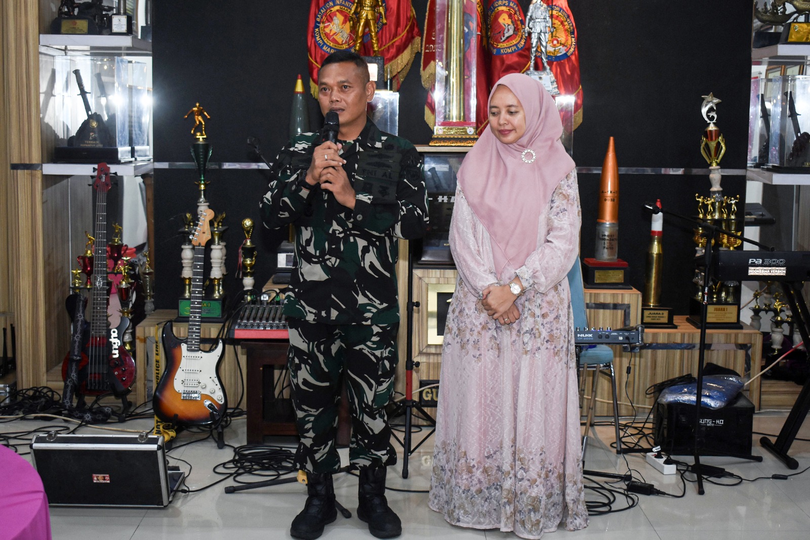 Dilanjutkan sambutan Danbrigif 2 Mar Kolonel Marinir Aang Andy Warta, M. Tr. Opsla., mengucapkan terima kasih atas undangan dan penyelenggaraan kegiatan ini. Walaupun ada perubahan tempat, kegiatan tetap berjalan dengan baik. Ini menunjukkan soliditas dan kesiapan seluruh prajurit, mari kita doakan agar selalu diberikan keselamatan dan keberhasilan kepada rekan-rekan yang sedang bertugas, khususnya di daerah operasi seperti Papua dan semoga keluarga besar Yonif 1 Marinir selalu kompak, solid, dan profesional. Kepada adik-adik, teruslah belajar dan raih cita-cita setinggi mungkin.