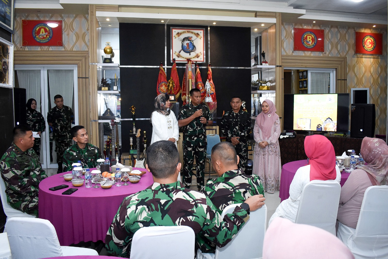 Kegiatan yang dihadiri oleh seluruh prajurit Purna Tugas Gobang III Yonif 1 Marinir tahun anggaran 2025 tersebut diawali dengan sambutan Komandan Batalyon Infanteri 1 Marinir Letkol Mar Siswanto, M.Tr.Opsla., menyampaikan rasa syukur dan terima kasih kepada seluruh prajurit atas dedikasi, loyalitas, dan profesionalisme selama menjalankan tugas negara di daerah perbatasan. Danyonif 1 Marinir juga mengajak seluruh anggota untuk menjadikan momentum buka puasa dan tasyakuran ini sebagai ajang mempererat silaturahmi serta memupuk semangat kebersamaan dalam keluarga besar satuan.