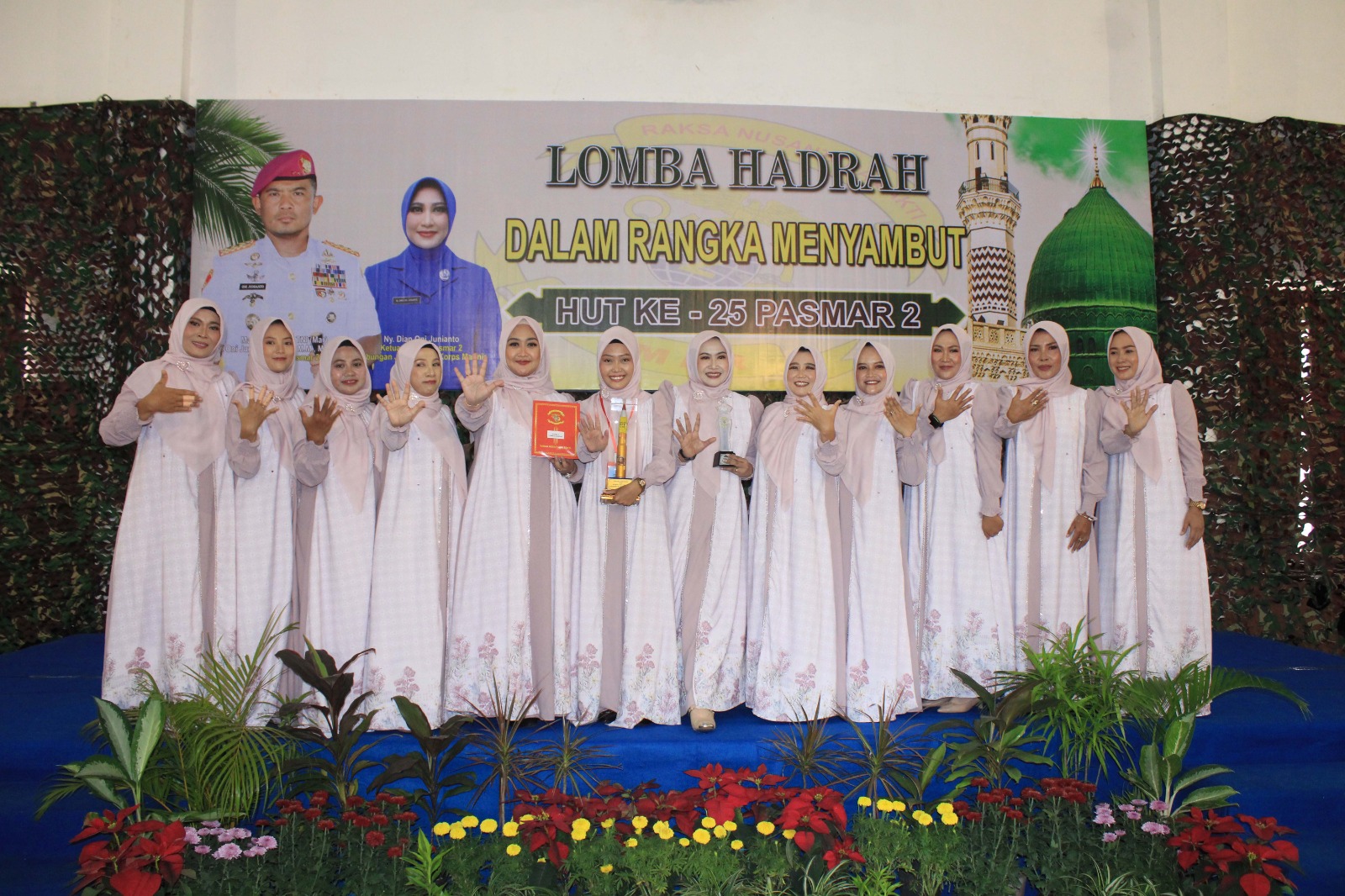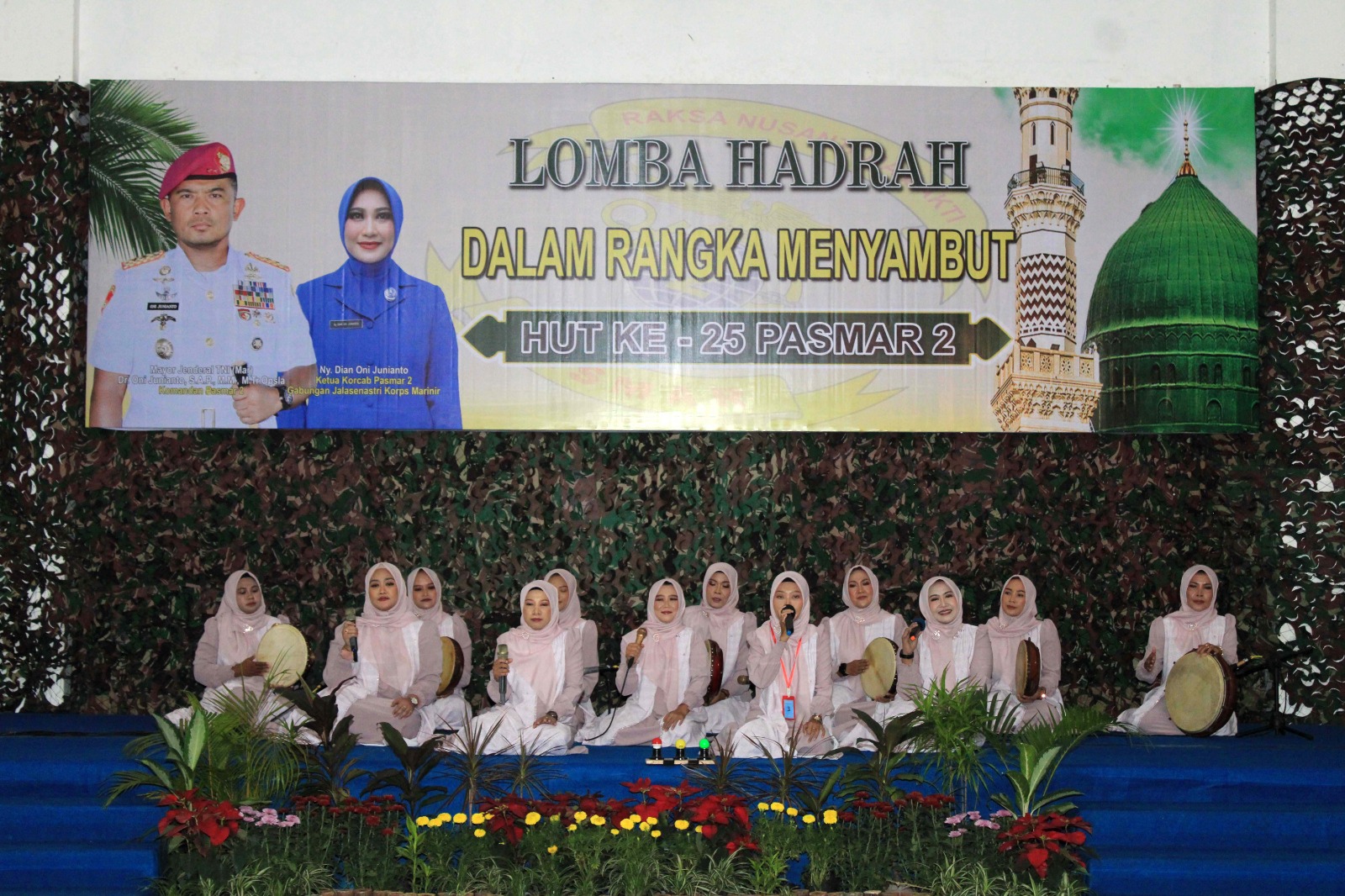 Dispen Kormar, TNI Angkatan Laut (Sidoarjo). Komandan Resimen Kavaleri 2 Marinir (Danmenkav 2 Mar) Letkol Mar Dr. Iwan Permana, S.H., M.Tr.Opsla., bersama Ketua Cabang 5 Korcab Pasmar 2 Gabungan Jalasenastri Korps Marinir Ny. Mitha Iwan Permana dan Dansatlak Menkav 2 Mar memberikan dukungan kepada Tim Hadrah Jalasenastri Cabang 5 Korcab Pasmar 2 pada lomba Hadrah tingkat Pasmar 2 menyambut HUT Ke-25 Pasmar 2 Tahun 2026 yang diselenggarakan di Graha Ghafur Chalik Pasmar 2, Gedangan, Sidoarjo. Jumat (27/02/2026).