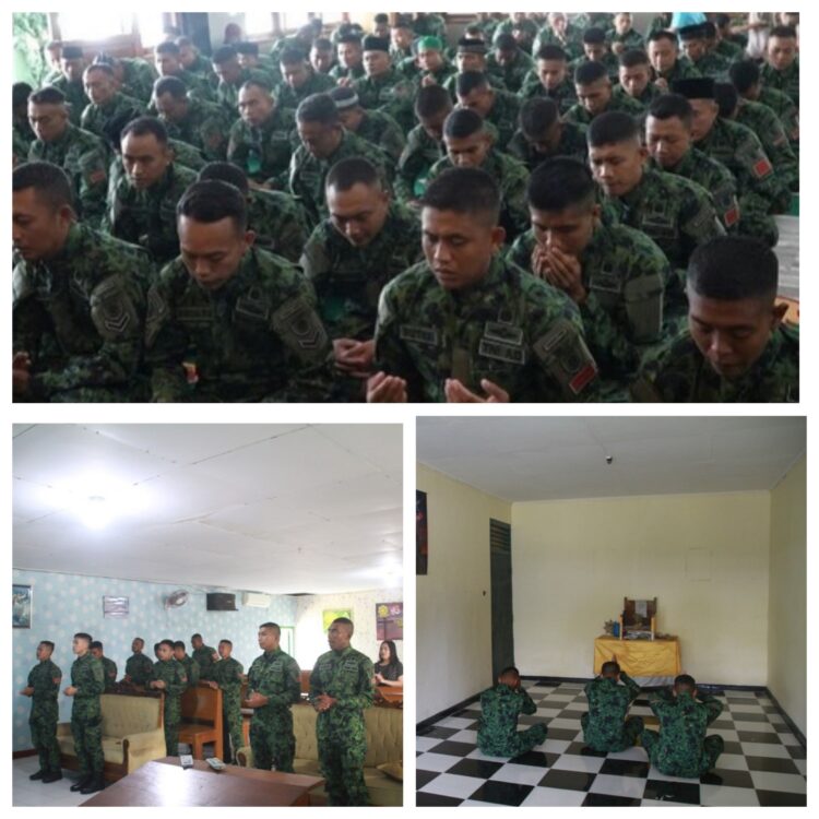 Sukoharjo – Dalam rangka memperingati HUT ke-65 Kostrad dengan tema “Kostrad Prima Mengabdi Untuk Indonesia Maju”, prajurit Batalyon Infanteri 413 Kostrad melaksanakan doa bersama di tempat ibadah masing-masing yang berada di lingkungan asrama satuan, meliputi masjid, gereja, dan pura. Kegiatan ini menjadi momentum untuk memperkuat nilai spiritual sekaligus mempererat kebersamaan di antara prajurit dalam menyambut hari jadi Kostrad. Jumat (06/03/2026).