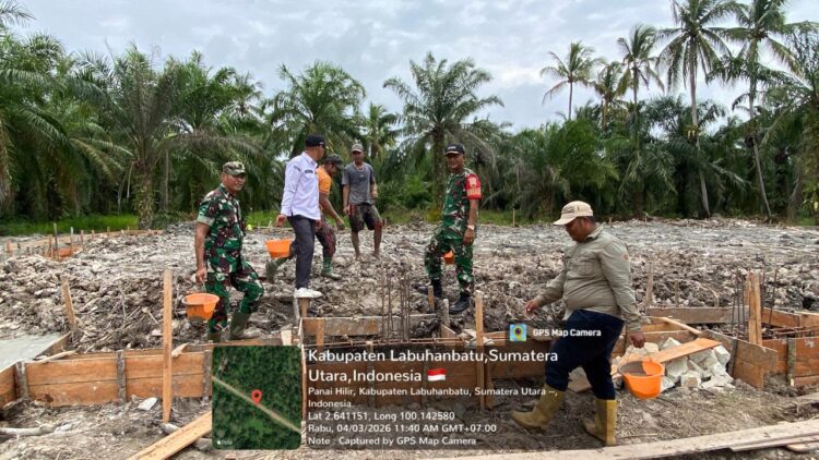 Labuhanbatu – Danramil 03/SB Kodim 0209/Labuhanbatu Mayor Inf Chrisman Limbong, S.I.P melaksanakan peletakan batu pertama pembangunan Gedung Koperasi Desa/Kelurahan Merah Putih (KDKMP) di Desa Sei Baru, Kecamatan Panai Hilir, Kabupaten Labuhanbatu, Rabu (04/03/2026). Kegiatan tersebut menjadi langkah awal pembangunan sarana yang diharapkan mampu mendukung penguatan ekonomi masyarakat desa.