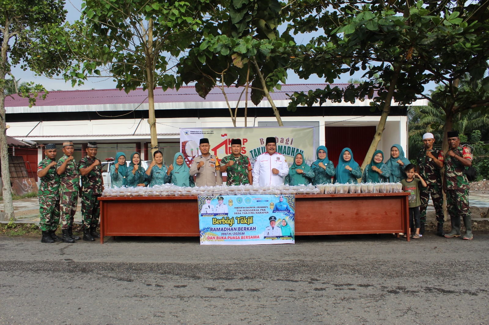 Labuhanbatu – Koramil 09/NL Kodim 0209/Labuhanbatu menggelar kegiatan berbagi takjil kepada masyarakat di KDKMP Desa Tanjung Harapan, Kecamatan Pangkatan, Kabupaten Labuhanbatu, Rabu (04/03/2026). Kegiatan yang dipimpin langsung oleh Danramil 09/NL Kapten Cba P. Matondang, SH, MH bersama enam orang anggota tersebut dilaksanakan sebagai bentuk kepedulian TNI kepada masyarakat sekaligus menyemarakkan bulan suci Ramadhan 1447 H.