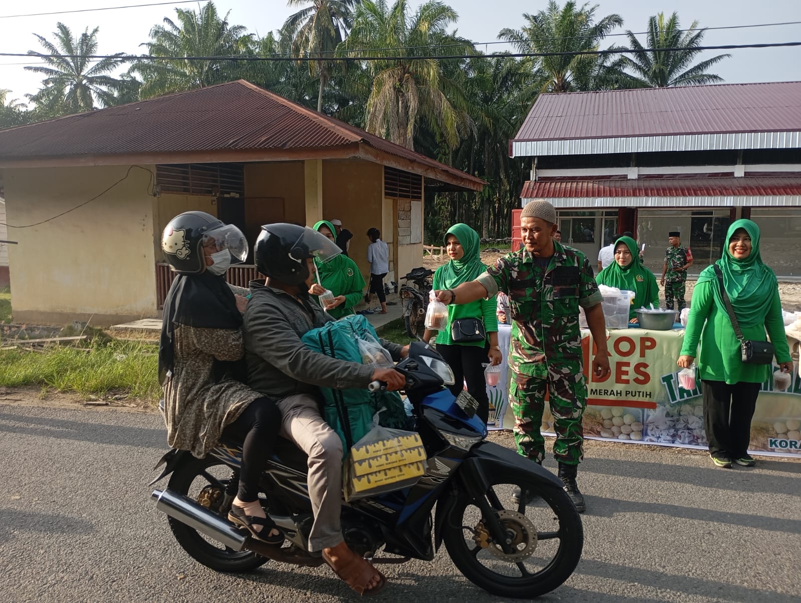 Labuhanbatu – Dalam semangat kebersamaan di bulan suci Ramadhan 1447 H, Koramil 10/Tanjung Medan Kodim 0209/Labuhanbatu menggelar kegiatan berbagi takjil kepada masyarakat dan para pengguna jalan yang melintas di depan Gedung Koperasi Desa/Kelurahan Merah Putih (KDKMP) Desa Tanjung Medan dan Desa Perkebunan Teluk Panji, Kecamatan Kampung Rakyat, Rabu sore (04/03/2026). Kegiatan ini menjadi wujud nyata kepedulian TNI kepada masyarakat di wilayah binaan.