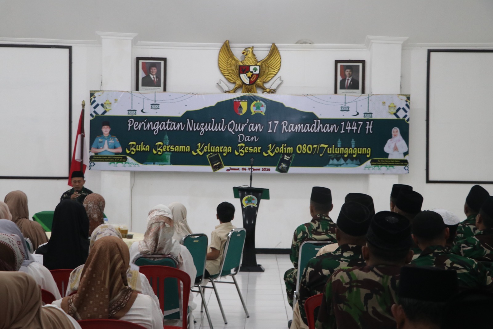 Tulungagung – Dalam rangka mengisi bulan suci Ramadhan dengan kegiatan keagamaan dan mempererat kebersamaan, Kodim 0807/Tulungagung menggelar peringatan Nuzulul Qur’an yang dirangkaikan dengan buka puasa bersama Ramadhan 1447 H/2026 M di Aula Pandu Sakti Makodim 0807/Tulungagung, Jl. Jaksa Agung Suprapto No. 17 Kelurahan Kampungdalem, Kecamatan Tulungagung, Kabupaten Tulungagung, Jawa Timur, Jumat (6/3/2026).