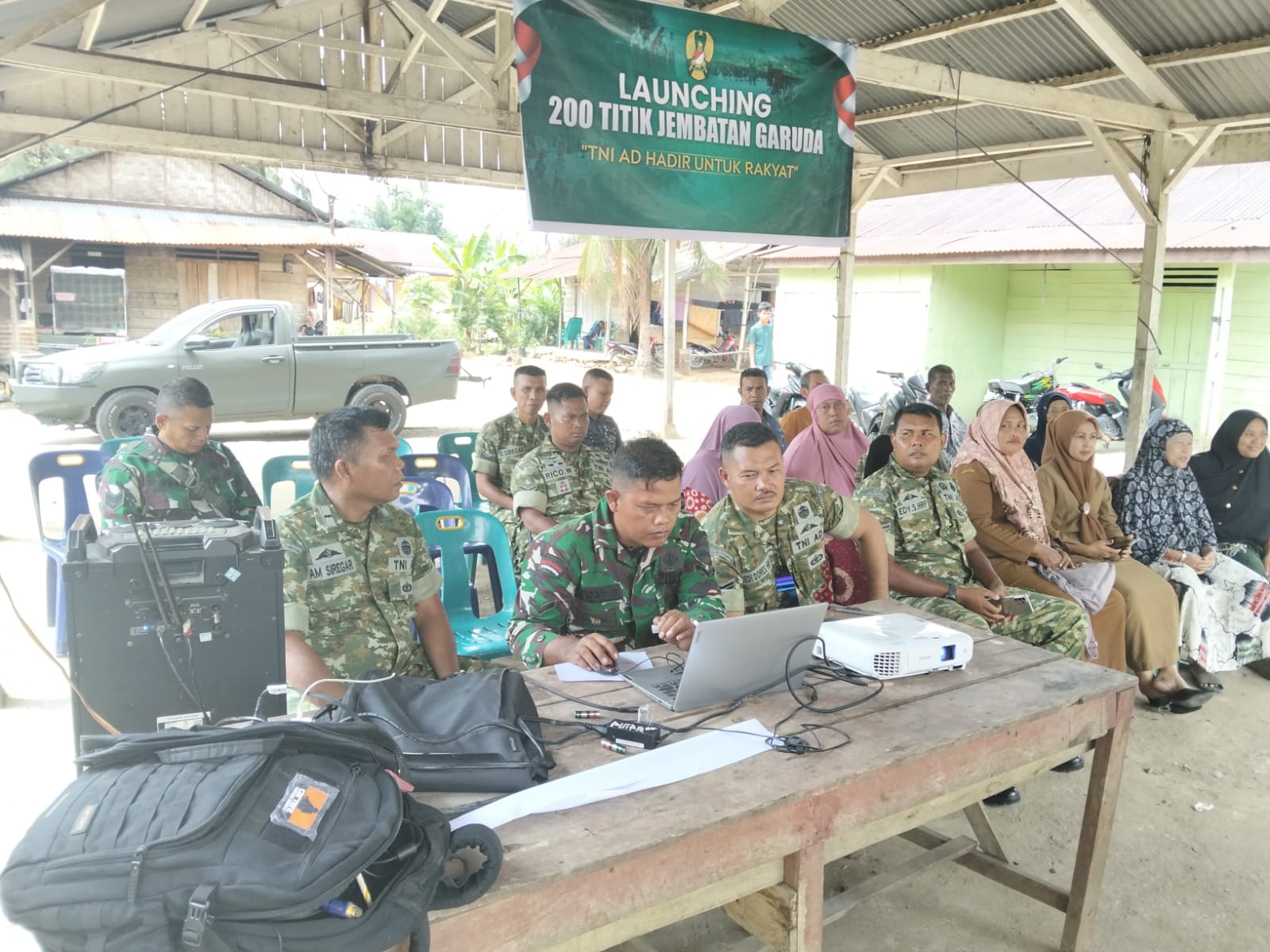 Labuhanbatu – Koramil 12/LP jajaran Kodim 0209/Labuhanbatu mengikuti kegiatan video conference dalam rangka peresmian 200 titik Jembatan Perintis Garuda dengan tema “TNI AD Hadir Untuk Rakyat” yang dilaksanakan secara serentak di seluruh Indonesia. Kegiatan tersebut berlangsung di Dusun Aek Tobang, Desa Huta Godang, Kecamatan Sungai Kanan, Kabupaten Labuhanbatu Selatan, Senin (09/03/2026).