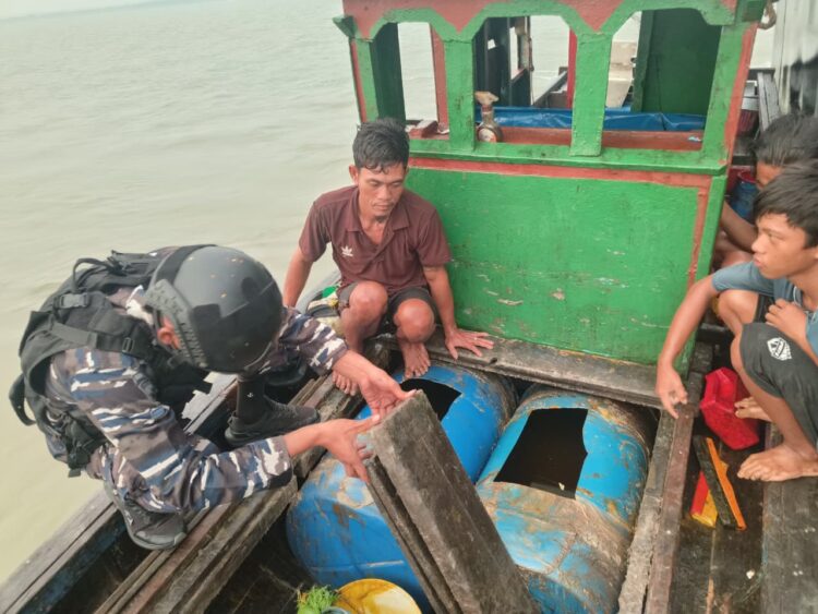 KRI Beladau-643 berhasil mengamankan sebuah kapal kargo kayu yang diduga melakukan pencurian minyak kelapa sawit mentah (CPO) di perairan Selat Rupat, Riau pada Jumat (03/4/2026).