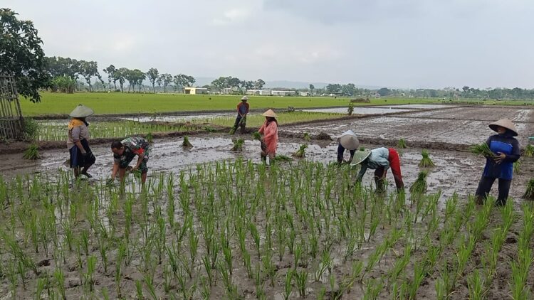 Tulungagung – Dalam upaya mendukung program ketahanan pangan nasional, Babinsa Desa Rejosari Serma Agus, anggota Koramil Tipe B 0807/14 Gondang, melaksanakan pendampingan pertanian penanaman padi bersama anggota Kelompok Tani Sidomakmur di Desa Rejosari, Kecamatan Gondang, Kabupaten Tulungagung, Jawa Timur, Sabtu (04/04/2026).