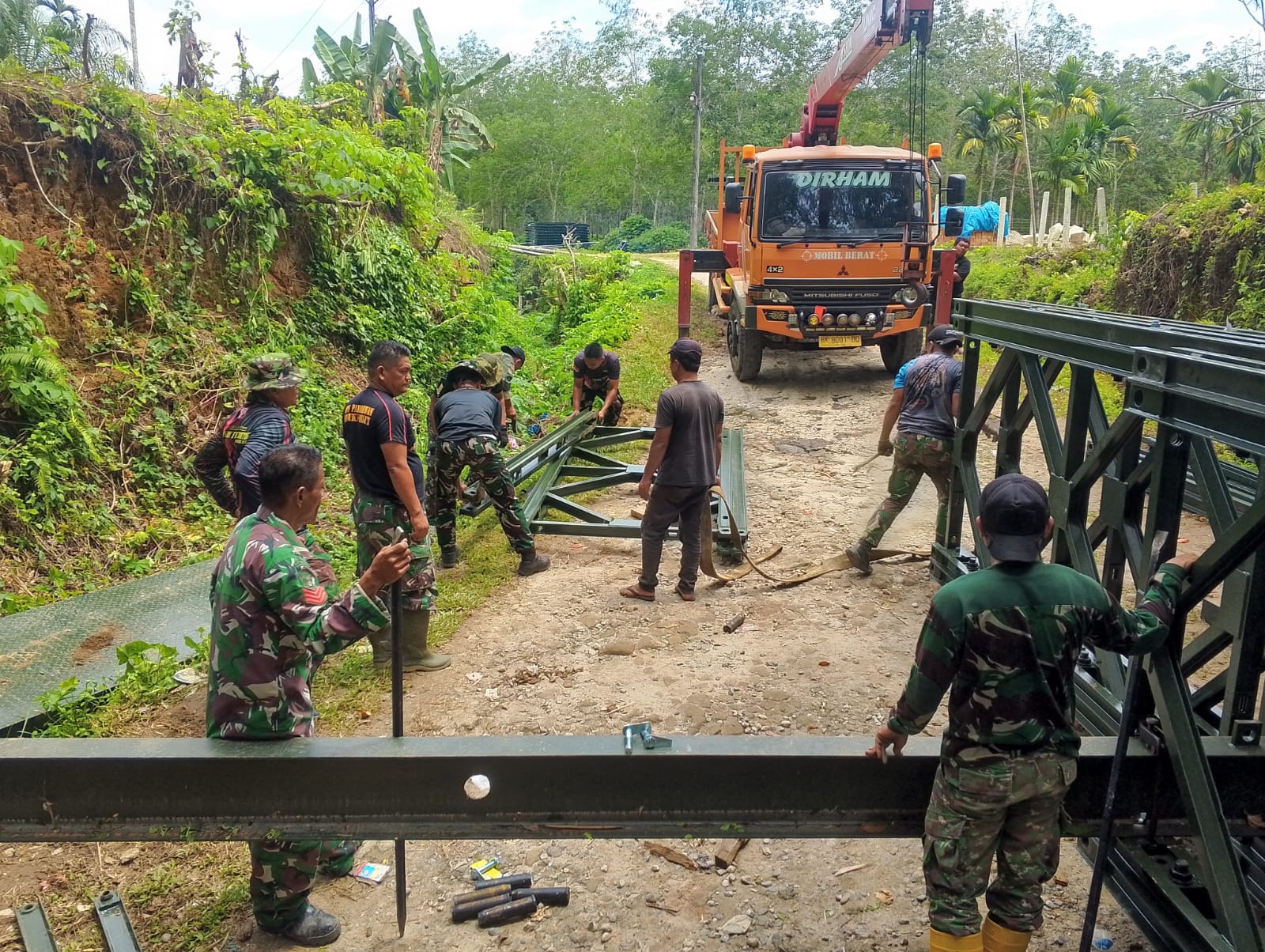 Simalungun – Kodim 0207/Simalungun bersama prajurit Yonzipur I/DD menuntaskan percepatan pembangunan jembatan modular di Huta III Bah Sulung, Nagori Dolok Maraja, Kecamatan Tapian Dolok, Kabupaten Simalungun, Minggu (5/4/2026). Jembatan tersebut kini telah rampung dan sudah dapat dimanfaatkan masyarakat untuk menunjang aktivitas sehari-hari.