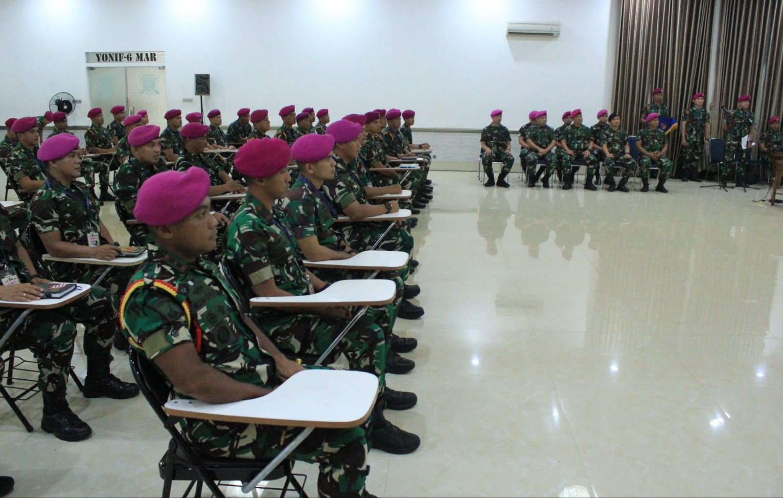 Prajurit Puslatpurmar 6 Jampangtengah mengikuti Briefing Pembukaan Penyelarasan Materi Latihan Pratugas TA 2026