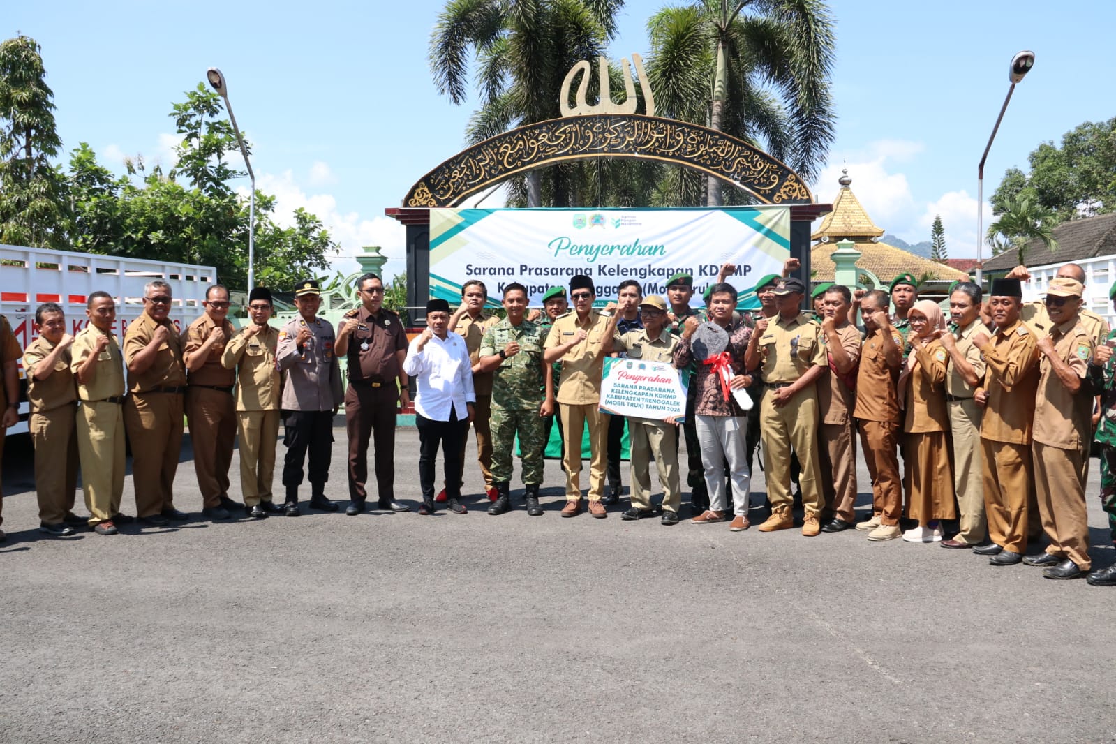 Truk merek Mitsubishi Fuso berwarna putih bertuliskan “Koperasi Merah Putih” itu langsung diserahkan kepada pengurus Koperasi Desa dan Kelurahan Merah Putih (KDKMP) oleh Wakil Bupati Trenggalek Syah Muhammad Natanegara bersama Dandim 0806/Trenggalek Letkol Inf Isnanto Roy Saputro.