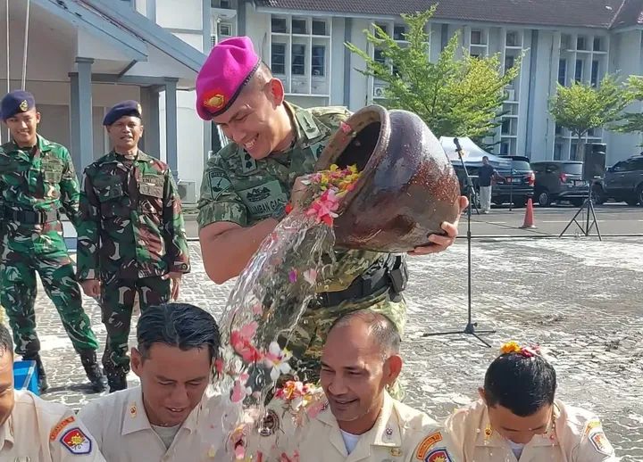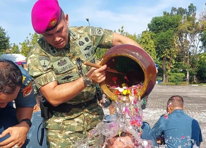 Nuansa penuh kebanggaan semakin terasa di akhir upacara dengan dilaksanakannya prosesi penyiraman air kembang. Tradisi khas TNI AL ini menambah suasana menjadi penuh Kemeriahan sekaligus sakral, melambangkan pembersihan diri dan penyegaran semangat baru bagi para personel yang naik pangkat dalam menapaki jenjang karier berikutnya.