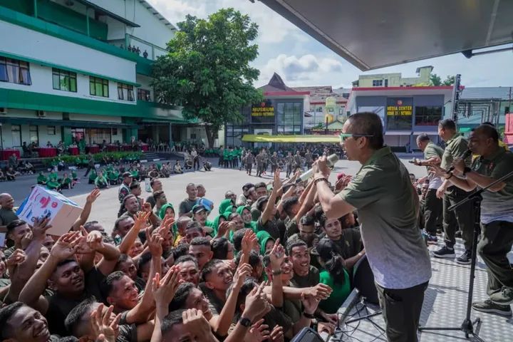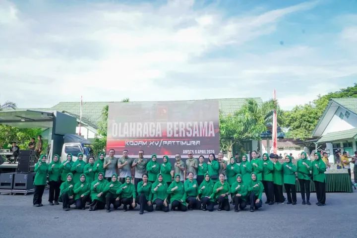 ​Suasana penuh keakraban menyelimuti Lapangan Makodam XV/Pattimura, Ambon, pada Senin (6/4/2026). Ratusan prajurit, Pegawai Negeri Sipil (PNS), dan anggota Persit Kartika Chandra Kirana berkumpul dalam acara olahraga bersama yang dikemas sebagai bentuk perpisahan (farewell party) bagi Pangdam XV/Pattimura.