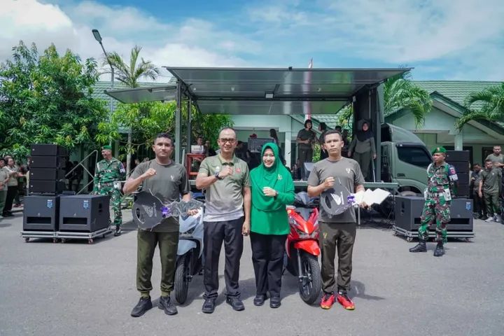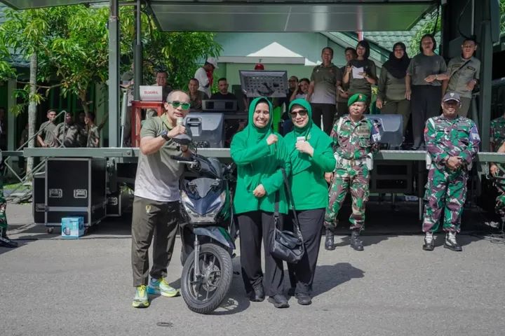​Puncak kemeriahan terjadi saat Pangdam bersama jajaran PJU menyerahkan hadiah utama berupa 3 unit sepeda motor kepada para pemenang yang beruntung, menutup rangkaian acara dengan penuh sukacita. (Pendam15)