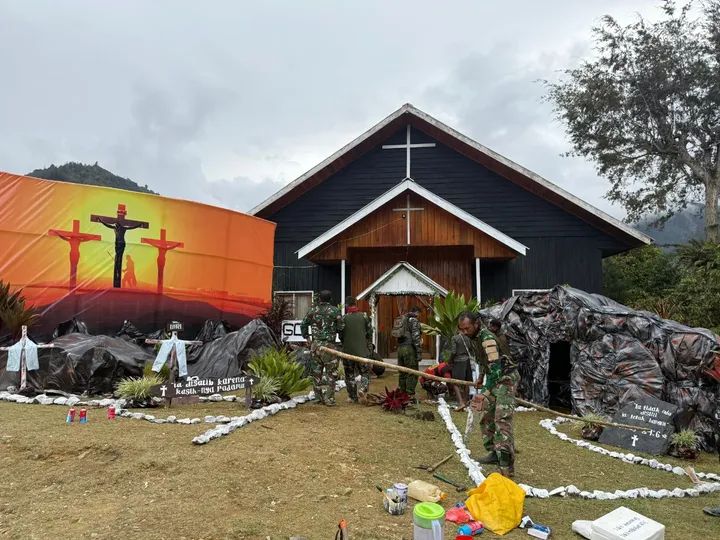 Semarak Paskah di Amboebera: Satgas Yonif 731/Kabaresi Bangun Taman Paskah dan Bagikan Alkitab untuk Jemaat